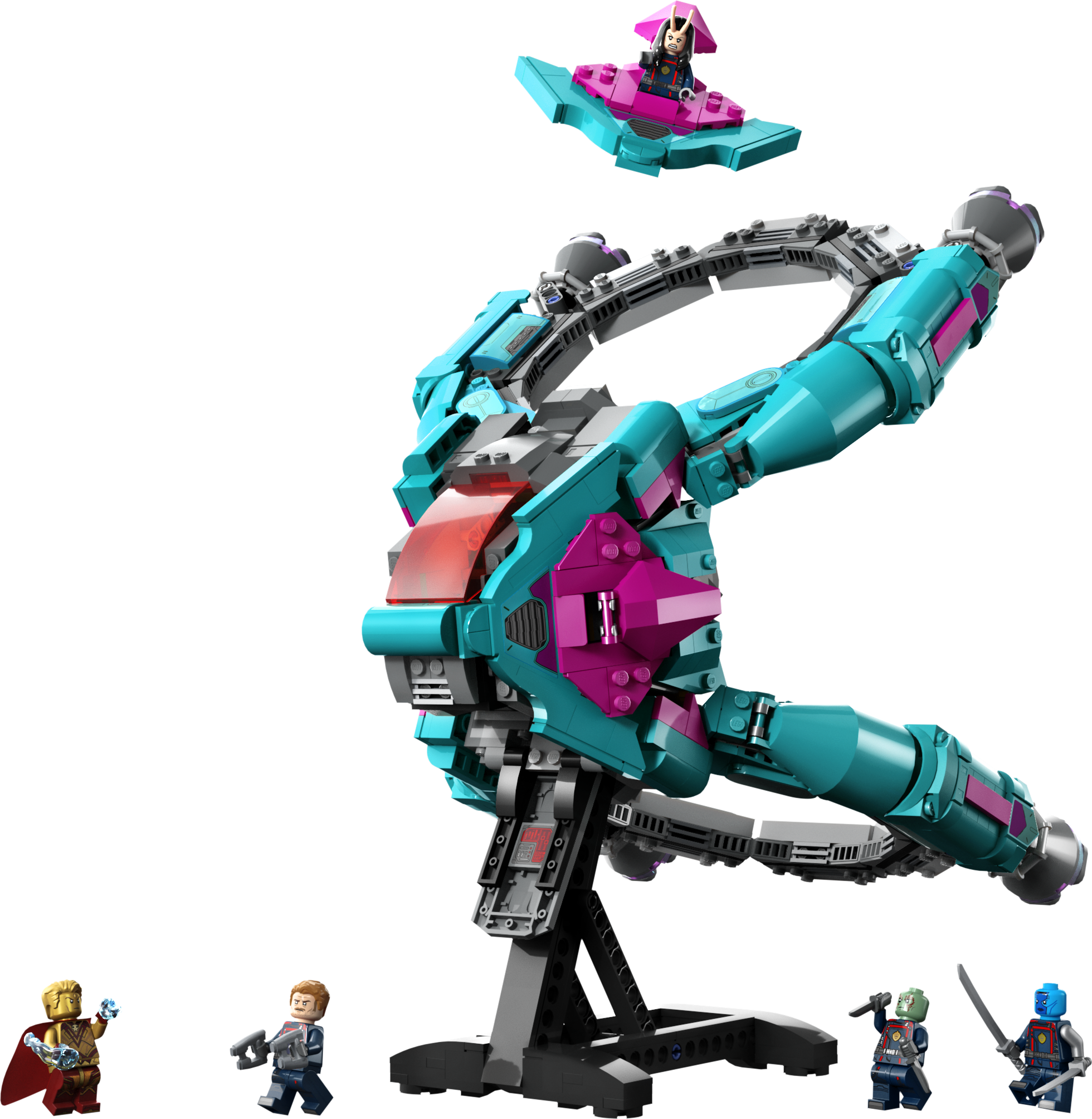 Cet incroyable vaisseau spatial jouet emmène les jeunes fans des personnages Marvel dans un univers plein de jeux créatifs et d'action. Le vaisseau spatial, constitué de briques, comprend un cockpit ouvrable avec assez d'espace pour 3 minifigurines LEGO, un compartiment secret pour une autre minifigurine, de la place pour des armes et des accessoires. Sont également inclus 2 petites navettes spatiales jouets qui peuvent être détachées du vaisseau-mère. L'ensemble contient 5 minifigures de super-héros Marvel : Mantis, Drax, Star-Lord, Nebula et Adam Warlock. Le jouet sur l'espace est léger, vous pourrez le soulever facilement afin d’imiter le vol dans l'espace ; et à la fin de la mission, vous pouvez placer le vaisseau spatial sur son support et l'exposer dans la chambre des enfants.