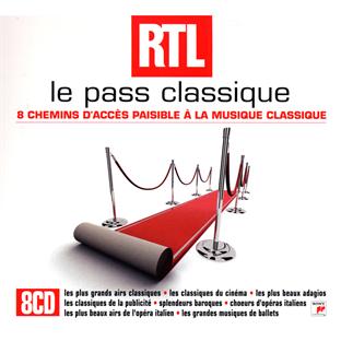 LE PASS CLASSIQUE RTL réunit 8 compilations qui proposent chacune un accès au classique par un thème porteur : 8 thèmes qui ont tous fait leur preuve individuellement en tant de passerelle effi cace vers cette musique, jouant sur la prescription populaire (les plus grands moments élus par les auditeurs d'Alain Duault sur RTL), sur des référents populaires (classique au cinéma ou dans la publiclité), des émotions fortes (Adagio, grands choeurs), un genre ou un style musical classique populaire (Opéra, baroque, musiques de ballets...). UN COFFRET QUI S'ÉCOUTE À LA CARTE, AU GRÉ DES HUMEURS ET DES ENVIES... LE PASS CLASSIQUE RTL, proposé conjointement par Sony Classical et RTL - se présente dans un boitier 8CD en accordéon (idem \"J'aime bien le classique...\"), à la fois pratique, pas trop encombrant et qualitatif. Une idée cadeau originale et ludique.