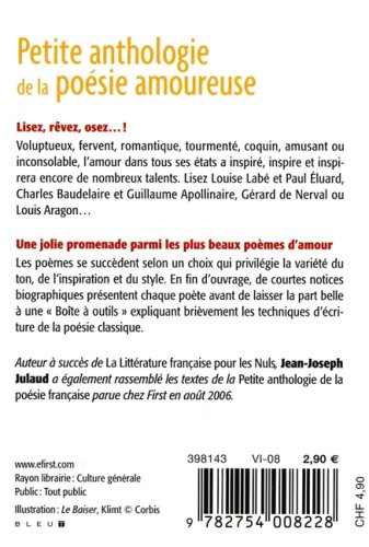 Venez découvrir les chefs d'œuvre du genre, classés par thèmes : voluptueux, fervents, fous d'amour, romantiques, tourmentés, coquins, amusants ou inconsolables, l'amour dans tous ses états a inspiré, inspire et inspirera encore de nombreux talents. Lisez Louise Labé et Paul Eluard, Charles Baudelaire et Jacques Prévert, Gérard de Nerval ou Georges Brassens...