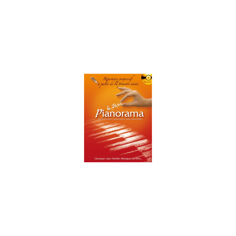 Auteur(s) : D. Le Guern , J. Guionet et J. Cambier Collection : PIANORAMA Support : Livre + CD Le répertoire tous styles pour une première année de piano dans l'enthousiasme et la bonne humeur ! Ce répertoire, élaboré par une équipe pédagogique expérimentée, met à la disposition de l'élève et de son professeur aussi bien les plus grands classiques de la pédagogie que des titres issus d'une culture musicale plus récente. Il s'agit d?éveiller le désir de l'élève sans jamais s'écarter de l'apprentissage des acquis pédagogiques indispensables à tout débutant : un choix de plus de 50 pièces, quatre-mains, progressivité, mélange des genres musicaux, mise en page attrayante et adaptée à la lecture des jeunes pianistes (couleur, gros caractère?) Le plus du CD : Tous les titres sont enregistrés et pour certains accompagnés d'un play-back