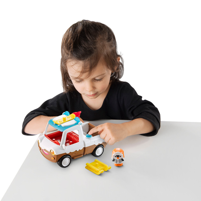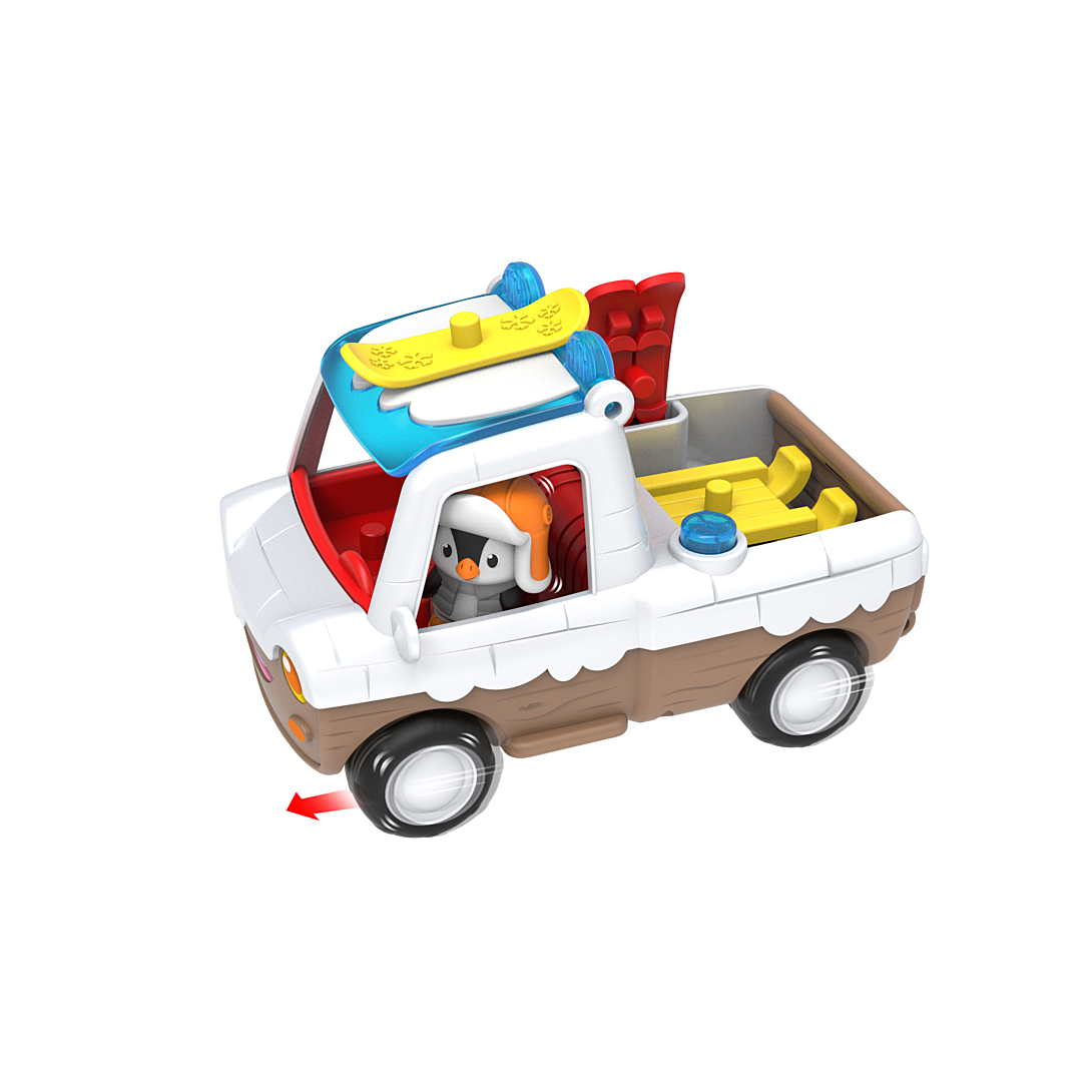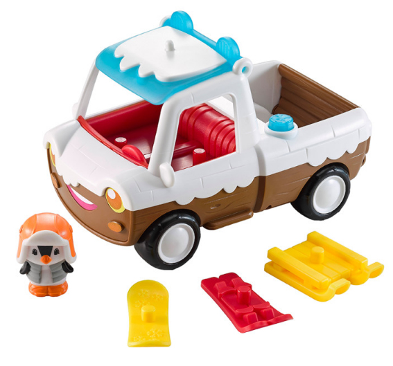 En route sur les pistes enneigées avec le pick-up des Klorofil! Pratique le toit s’ouvre pour insérer facilement les personnages dans la cabine. Rigolo, en appuyant sur le flocon, le coffre s’ouvre et la luge s’éjecte comme par magie! Inclus : 1 personnage exclusif et 3 accessoires.