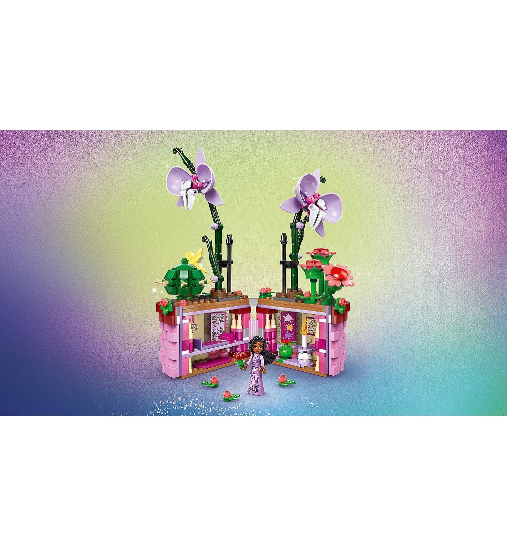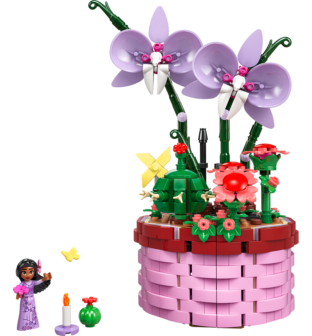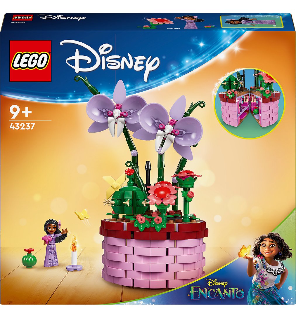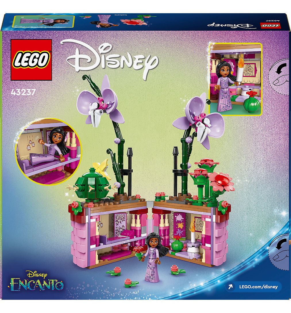 Surprenez les fans de Disney passionnés d’art et de design dès 9 ans avec LEGO® ǀ Disney Encanto Le pot de fleurs d’Isabela (43237). Ce set inclut un panier de fleurs qui s’ouvre pour révéler une chambre secrète ornée de nombreux détails du film, mais aussi une mini-poupée d’Isabela LEGO ǀ Disney. Lorsque le pot est fermé, les orchidées et le cactus LEGO à construire forment une composition très décorative. Ce set Disney détaillé propose aux filles et aux garçons dès 9 ans une construction complexe et des options de jeu amusantes dans la chambre secrète à l’intérieur du pot de fleurs. Après le jeu, il devient un superbe objet à exposer dans une chambre ou sur une étagère. Les enfants et les fans adultes peuvent admirer les détails du pot de fleurs et s’amuser à construire ensemble. L’application LEGO Builder propose une expérience de construction intuitive : les constructeurs peuvent zoomer, faire pivoter les modèles en 3D, sauvegarder leurs sets et suivre leur progression.