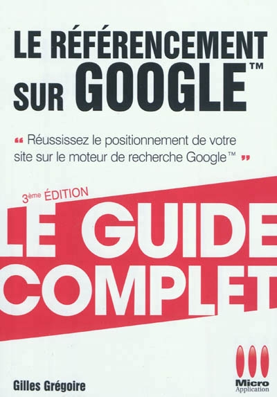 "Le Guide Complet : la meilleure façon de faire le tour du sujet !" Le tour complet du sujet traité . Les principes du référencement naturel . Les backlinks . Les liens sponsorisés . Les stratégies . Le Page Rank . L'automatisation . Les analyses . Le retour sur investissement La pratique par l'exemple . Concevez une stratégie de référencement . Optimisez les liens . Identifiez les pages désindexées . Mesurez le gain de votre référencement . Identifiez les mots-clés . Automatisez le référencement Approfondissez vos connaissances . Le sitemap XML . Les pénalités infligées . Les contenus en silo . Les contraintes avec Flash, Javascript . Le PR sculpting . La réécriture d'URL . Le GoogleTM writing . Les optimisations . Les statistiques