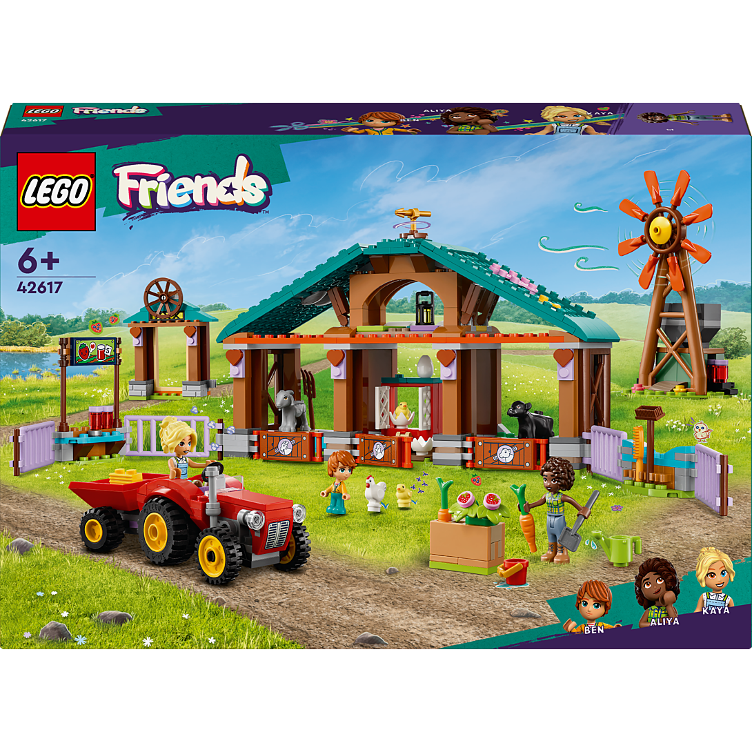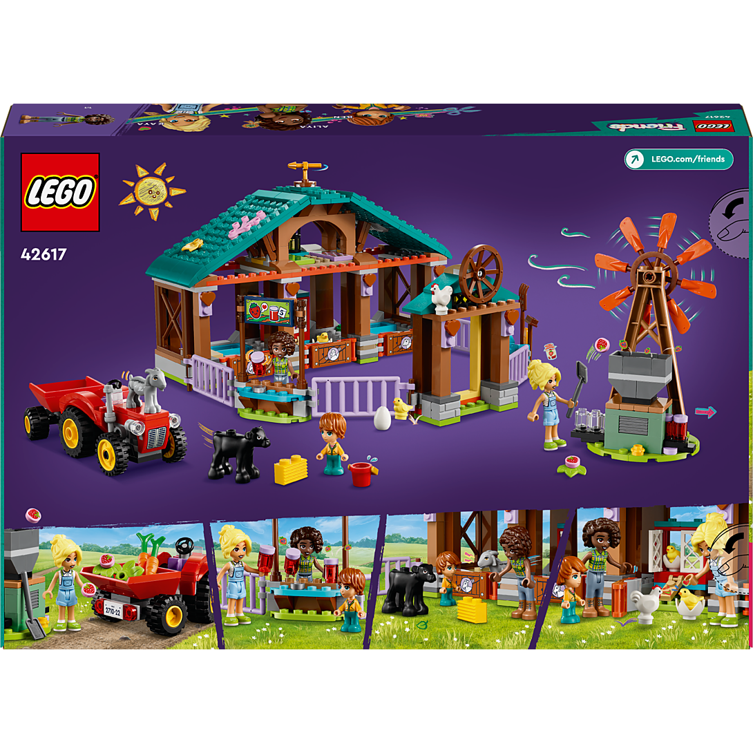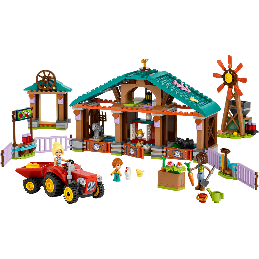 Le Refuge des Animaux de la Ferme LEGO Friends (42617) offre aux filles et aux garçons dès 6 ans des heures de plaisir. Votre enfant peut créer ses propres histoires et, par exemple, récolter des jouets de fruits et de légumes, faire de la confiture de fraises ou prendre soin des animaux de la ferme. Le jouet de la ferme LEGO pour les enfants de 6 ans comprend 3 figurines LEGO Friends, une chèvre, une vache, un poulet et 2 poussins. Lorsque vous ouvrez le bâtiment de la ferme, vous découvrez les boîtes séparées pour les différents jouets d'animaux. Le jouet pour enfants comprend également un jouet tracteur et un moulin à vent. Dans le moulin à vent, il y a une fonction cool : les pots vides insérés dans la machine ressortent comme des pots de confiture pleins. Les accessoires comprennent des carottes, des fraises, des pots, une fourche, une brosse, une pelle, des œufs, des bottes de foin et une lanterne. Cet ensemble de jeu avec des animaux de ferme est également livré avec l'application LEGO Builder, qui offre à votre enfant une aventure de construction simple et intuitive. Dans l'application, votre enfant peut zoomer et faire pivoter les modèles en 3D, sauvegarder des ensembles et suivre sa progression de construction. Les ensembles LEGO dès 4 ans facilitent la construction pour les enfants grâce à des éléments de démarrage pratiques et légèrement plus grands. Cet ensemble de jouets pour animaux de la ferme LEGO Friends est une excellente idée cadeau pour les enfants qui aiment jouer à être vétérinaire.