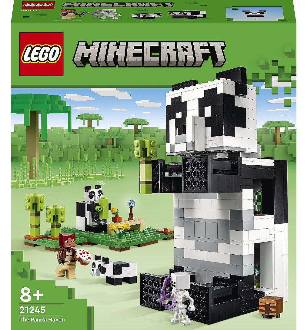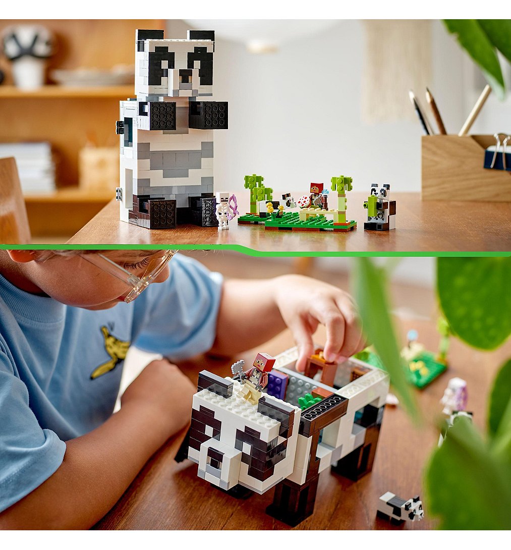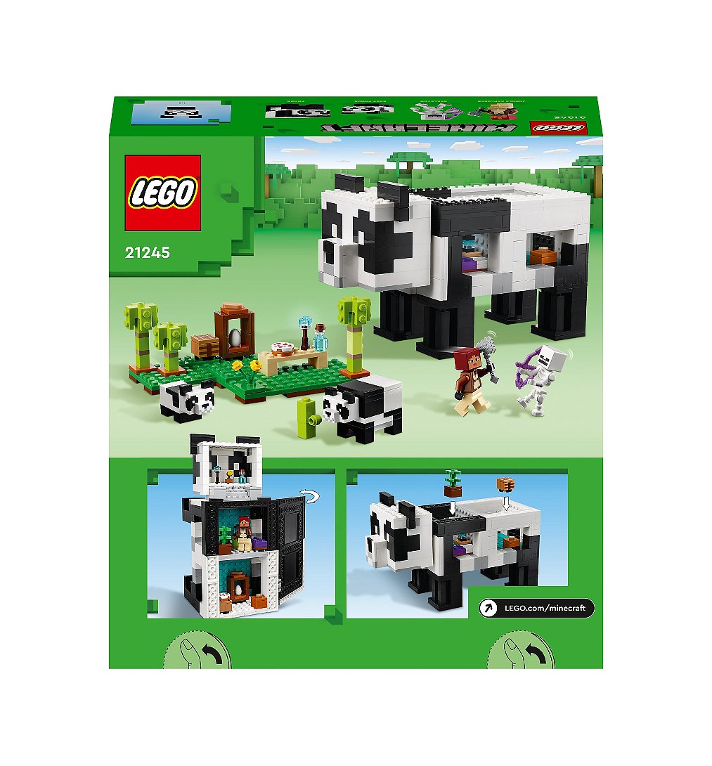 Le jouet de construction LEGO Minecraft Le Refuge Panda (21245) pour les enfants de 8 ans et plus est le jouet ultime pour les joueurs de Minecraft qui ont une passion pour les pandas et un amour pour les jouets animaliers. Ce panda surdimensionné, qui fait office de maison Minecraft meublée, est sûr de ravir tous les joueurs du jouet populaire. Le jouet maison Minecraft à construire, à 3 étages et en forme de panda, est doté d'une ouverture à l'arrière qui permet aux enfants d'accéder aux pièces meublées à l'intérieur. Grâce à la structure articulée, notamment une tête articulée, la maison panda peut être positionnée soit debout, à quatre pattes ou assise. Dans chaque cas, l'intérieur des pièces peut être reconfiguré en conséquence. Les personnages Minecraft comprennent un explorateur de la jungle, un panda, un bébé panda et une figurine squelette Minecraft hostile que les enfants peuvent affronter. À l'extérieur de la structure principale se trouve une jungle de bambous où les joueurs peuvent s'adonner à un passe-temps favori de Minecraft : donner des gâteaux aux pandas. Pour plus de plaisir numérique, l'application LEGO Builder comporte des outils intuitifs de zoom et de rotation qui permettent aux enfants de visualiser leurs jouets de construction Minecraft pendant qu'ils construisent. Offrez ce jouet polyvalent de jouets panda comme cadeau d'anniversaire, pour Noël ou quel que soit le jour à des enfants de 8 ans et plus qui aiment Minecraft, les pandas et les jouets animaux. La structure de la maison du panda à construire mesure plus de 22 cm de haut, 11 cm de large et 10 cm de profondeur. Contient 553 pièces.