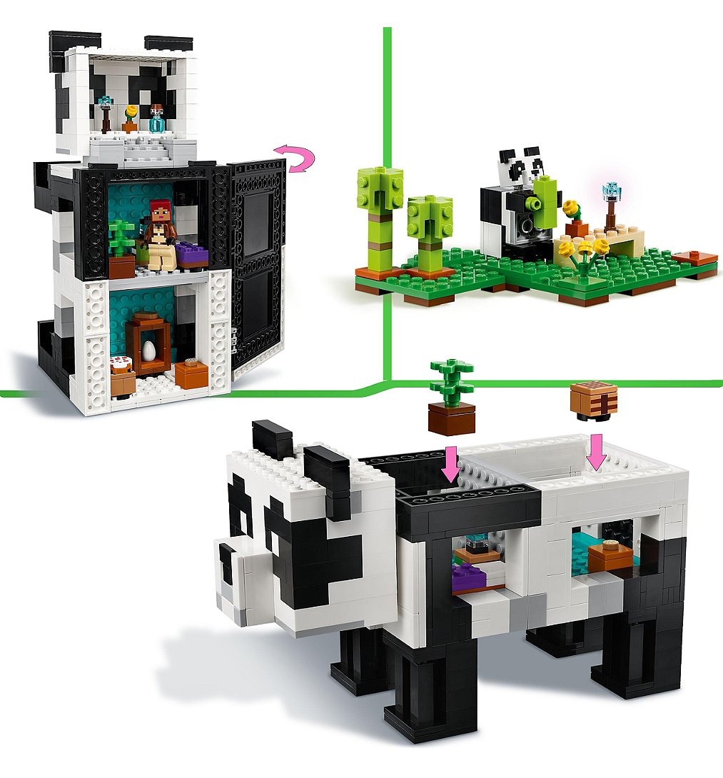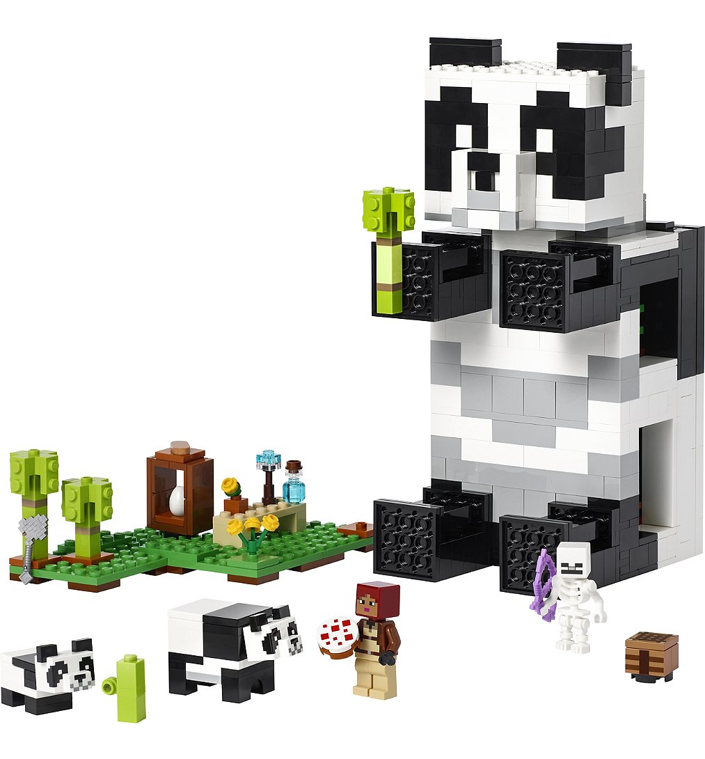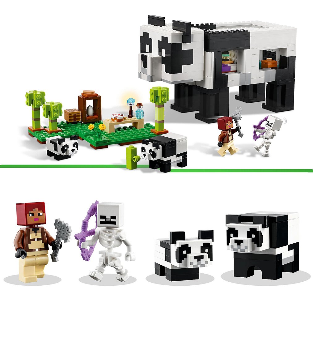 Le jouet de construction LEGO Minecraft Le Refuge Panda (21245) pour les enfants de 8 ans et plus est le jouet ultime pour les joueurs de Minecraft qui ont une passion pour les pandas et un amour pour les jouets animaliers. Ce panda surdimensionné, qui fait office de maison Minecraft meublée, est sûr de ravir tous les joueurs du jouet populaire. Le jouet maison Minecraft à construire, à 3 étages et en forme de panda, est doté d'une ouverture à l'arrière qui permet aux enfants d'accéder aux pièces meublées à l'intérieur. Grâce à la structure articulée, notamment une tête articulée, la maison panda peut être positionnée soit debout, à quatre pattes ou assise. Dans chaque cas, l'intérieur des pièces peut être reconfiguré en conséquence. Les personnages Minecraft comprennent un explorateur de la jungle, un panda, un bébé panda et une figurine squelette Minecraft hostile que les enfants peuvent affronter. À l'extérieur de la structure principale se trouve une jungle de bambous où les joueurs peuvent s'adonner à un passe-temps favori de Minecraft : donner des gâteaux aux pandas. Pour plus de plaisir numérique, l'application LEGO Builder comporte des outils intuitifs de zoom et de rotation qui permettent aux enfants de visualiser leurs jouets de construction Minecraft pendant qu'ils construisent. Offrez ce jouet polyvalent de jouets panda comme cadeau d'anniversaire, pour Noël ou quel que soit le jour à des enfants de 8 ans et plus qui aiment Minecraft, les pandas et les jouets animaux. La structure de la maison du panda à construire mesure plus de 22 cm de haut, 11 cm de large et 10 cm de profondeur. Contient 553 pièces.