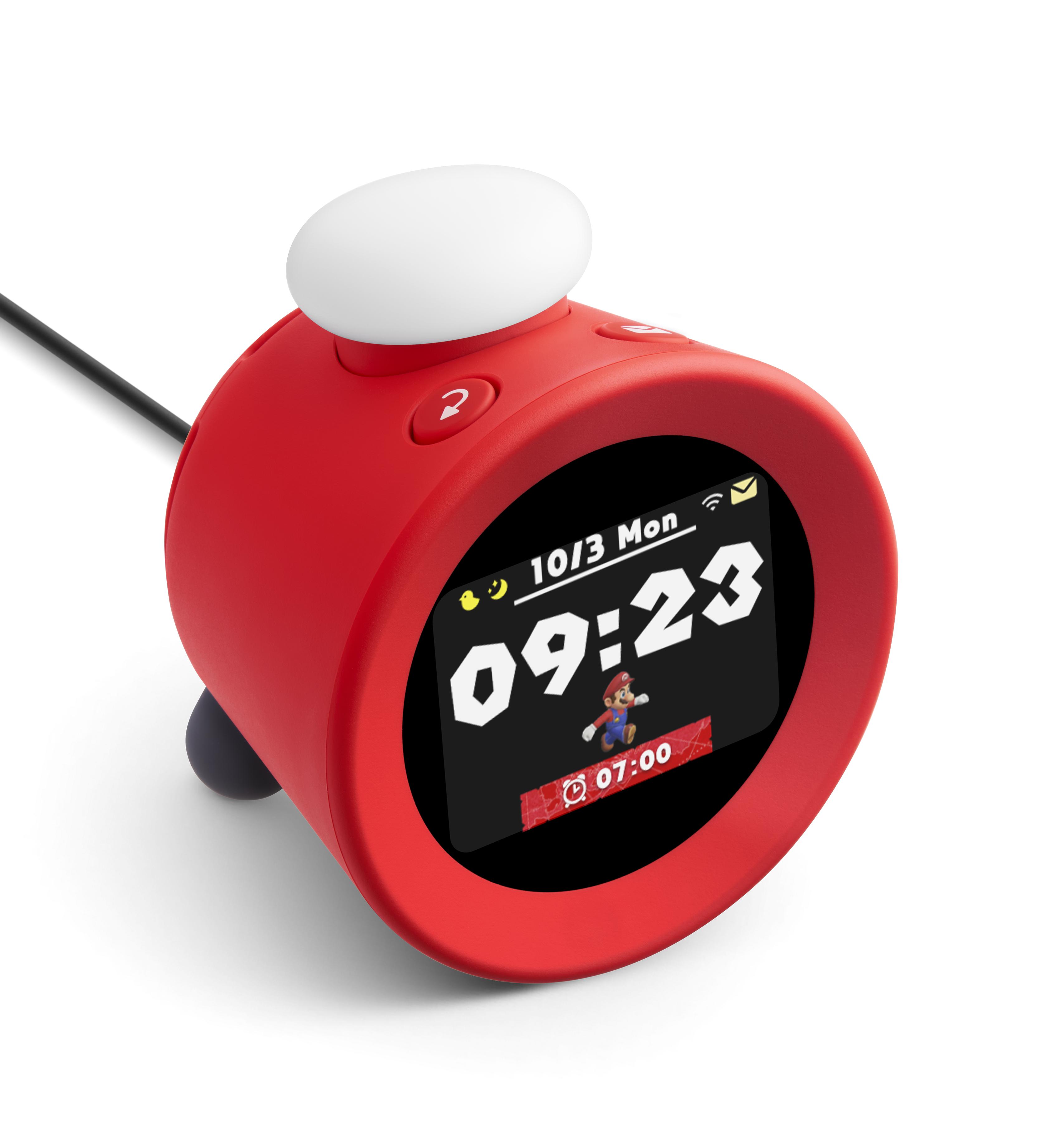 Ajoutez une touche Nintendo à votre routine du matin avec le réveil musical de Nintendo : Alarmo. Ce réveil interactif détecte vos mouvements quand vous vous levez et joue des sons de l'univers de jeux Nintendo. Réveillez-vous avec une envie d'aventure grâce aux musiques de The Legend of Zelda: Breath of the Wild. Commencez votre journée à pleine vitesse avec les musiques de Mario Kart 8 Deluxe. Envie d'un réveil plus doux et apaisant ? Choisissez les musiques de jazz de Super Mario Odyssey. Des musiques de Pikmin 4, Splatoon 3 et Ring Fit Adventure sont également disponibles. Des musiques de jeux supplémentaires arriveront via de futures mises à jour. Sélectionnez un jeu, choisissez une scène et une heure, puis laissez Alarmo se charger du reste ! La sonnerie se lance à l'heure que vous avez choisie et joue la musique et les effets sonores de la scène que vous avez sélectionnée.