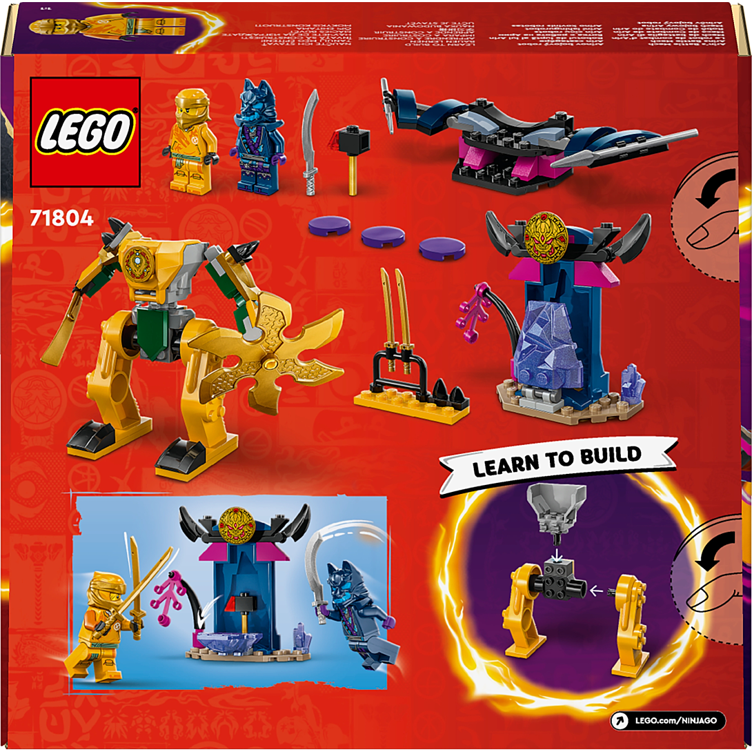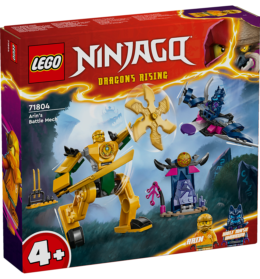 Le Robot de Combat d’Arin (71804) est un jouet de ninja qui enseigne aux enfants de 4 ans et plus comment construire. Votre enfant peut aider le héros ninja à sauver ses amis les dragons. Ce jouet d'action comprend une impressionnante figurine de robot que les enfants peuvent utiliser pour recréer des aventures passionnantes de la deuxième saison de la série télévisée NINJAGO: L'ascension des dragons. Ce petit ensemble LEGO comprend 2 figurines LEGO NINJAGO : Arin avec un mini-katana et un Guerrier au masque de loup avec une épée jouet. NINJAGO Arin s'adapte au robot LEGO NINJAGO mobile, qui agite une grande épée et une lame rotative. Le Guerrier au masque de loup peut quant à lui s'envoler avec une plate-forme dotée d'ailes mobiles, d'un tireur de disques et de 2 lances. Et dans la grotte de cristal en LEGO, vous trouverez un marteau magique ainsi qu'un support d'équipement avec 2 mini-katanas dorés. L'ensemble comprend également un élément de construction de départ. Il s'agit d'une pièce déjà partiellement assemblée qui permet aux enfants de construire rapidement et en toute confiance. Ce jouet LEGO NINJAGO vise à faire découvrir aux enfants de 4 ans et plus la joie de construire avec des briques LEGO et à leur offrir une excellente expérience de jeu. Ce robot LEGO NINJAGO est un excellent cadeau pour les garçons et les filles qui adorent LEGO NINJAGO: L'ascension des dragons et les figurines d'action.