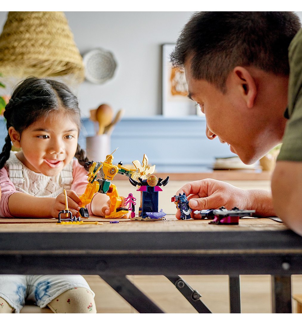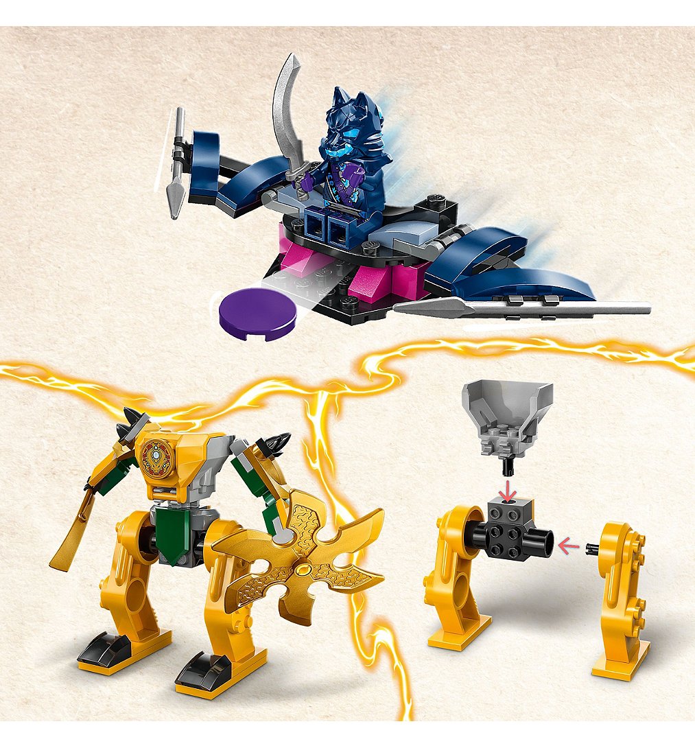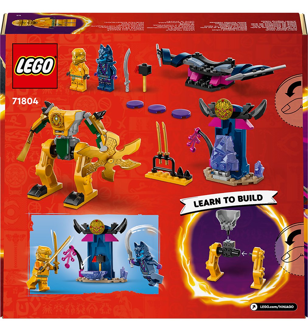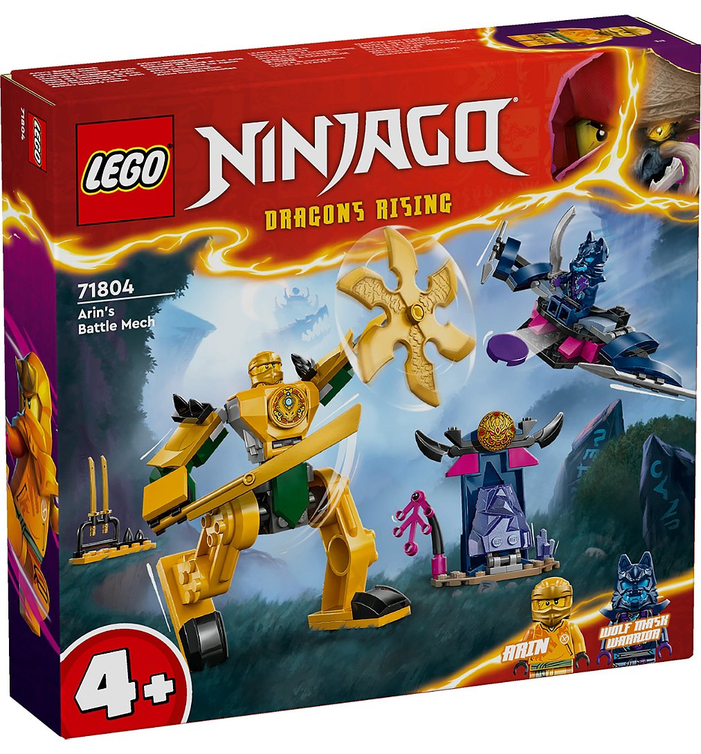 Le Robot de Combat d’Arin (71804) est un jouet de ninja qui enseigne aux enfants de 4 ans et plus comment construire. Votre enfant peut aider le héros ninja à sauver ses amis les dragons. Ce jouet d'action comprend une impressionnante figurine de robot que les enfants peuvent utiliser pour recréer des aventures passionnantes de la deuxième saison de la série télévisée NINJAGO: L'ascension des dragons. Ce petit ensemble LEGO comprend 2 figurines LEGO NINJAGO : Arin avec un mini-katana et un Guerrier au masque de loup avec une épée jouet. NINJAGO Arin s'adapte au robot LEGO NINJAGO mobile, qui agite une grande épée et une lame rotative. Le Guerrier au masque de loup peut quant à lui s'envoler avec une plate-forme dotée d'ailes mobiles, d'un tireur de disques et de 2 lances. Et dans la grotte de cristal en LEGO, vous trouverez un marteau magique ainsi qu'un support d'équipement avec 2 mini-katanas dorés. L'ensemble comprend également un élément de construction de départ. Il s'agit d'une pièce déjà partiellement assemblée qui permet aux enfants de construire rapidement et en toute confiance. Ce jouet LEGO NINJAGO vise à faire découvrir aux enfants de 4 ans et plus la joie de construire avec des briques LEGO et à leur offrir une excellente expérience de jeu. Ce robot LEGO NINJAGO est un excellent cadeau pour les garçons et les filles qui adorent LEGO NINJAGO: L'ascension des dragons et les figurines d'action.
