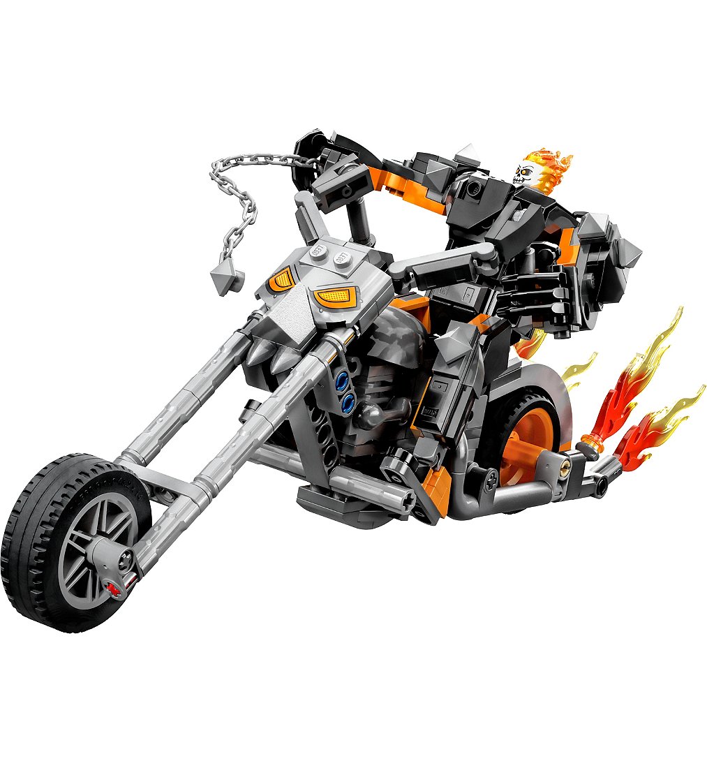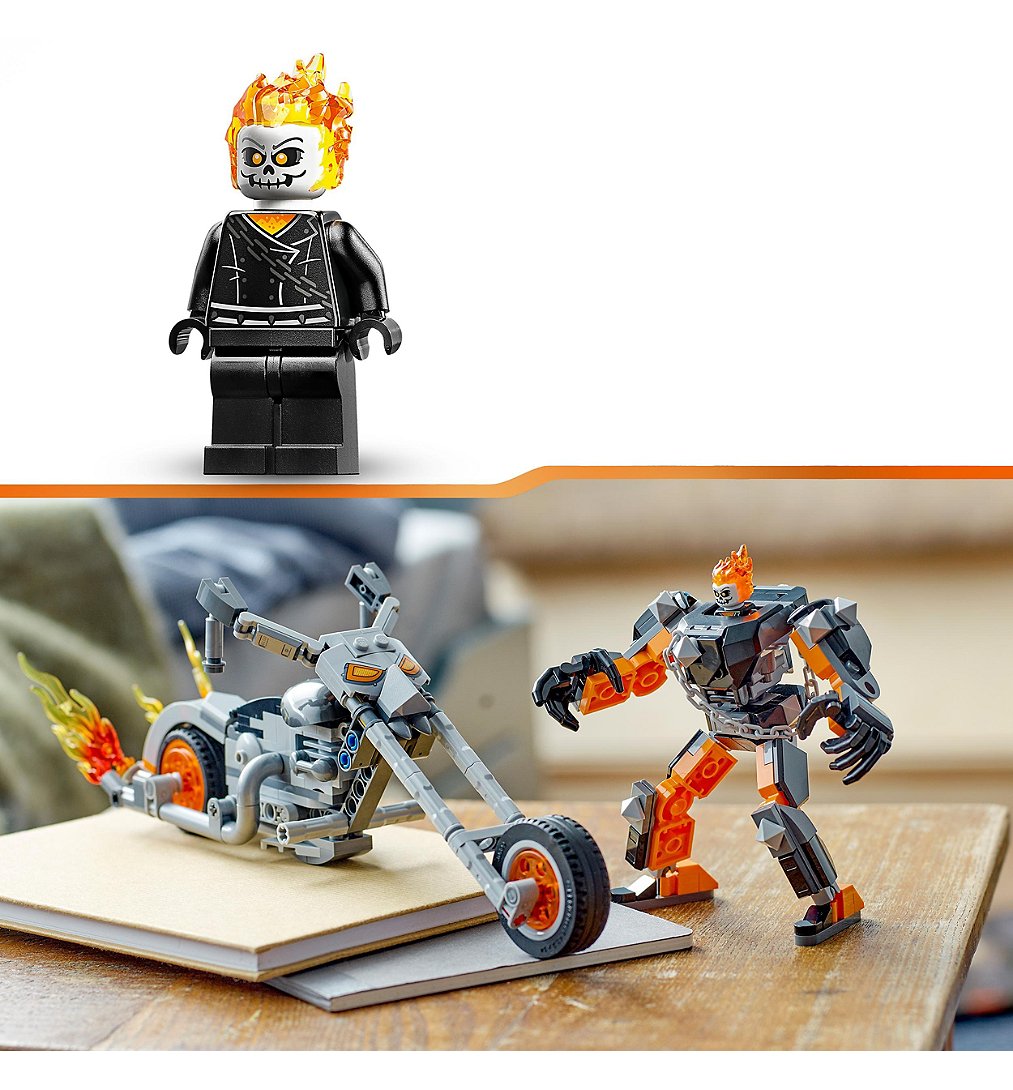 Plus produit Le plein daction LEGO® Marvel avec un robot de Ghost Rider surdimensionné, doté de puissantes mains, de bras et de jambes articulés, et sa superbe moto.