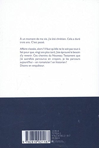 "À un moment de ma vie, j'ai été chrétien. Cela a duré trois ans. C'est passé. Affaire classée, alors ? Il faut qu'elle ne le soit pas tout à fait pour que, vingt ans plus tard, j'aie éprouvé le besoin d'y revenir. Ces chemins du Nouveau Testament que j'ai autrefois parcourus en croyant, je les parcours aujourd'hui - en romancier ? en historien ? Disons en enquêteur."