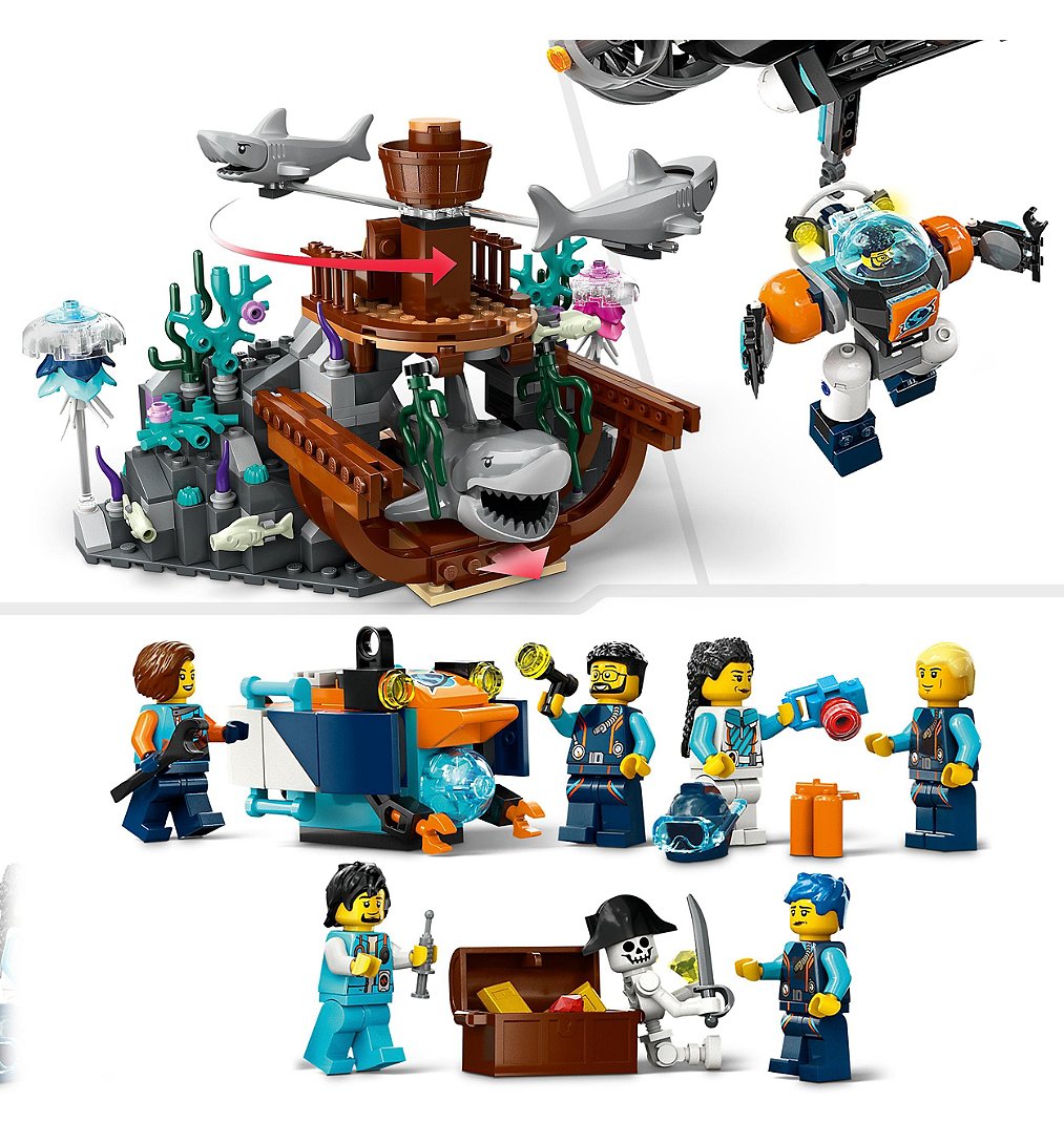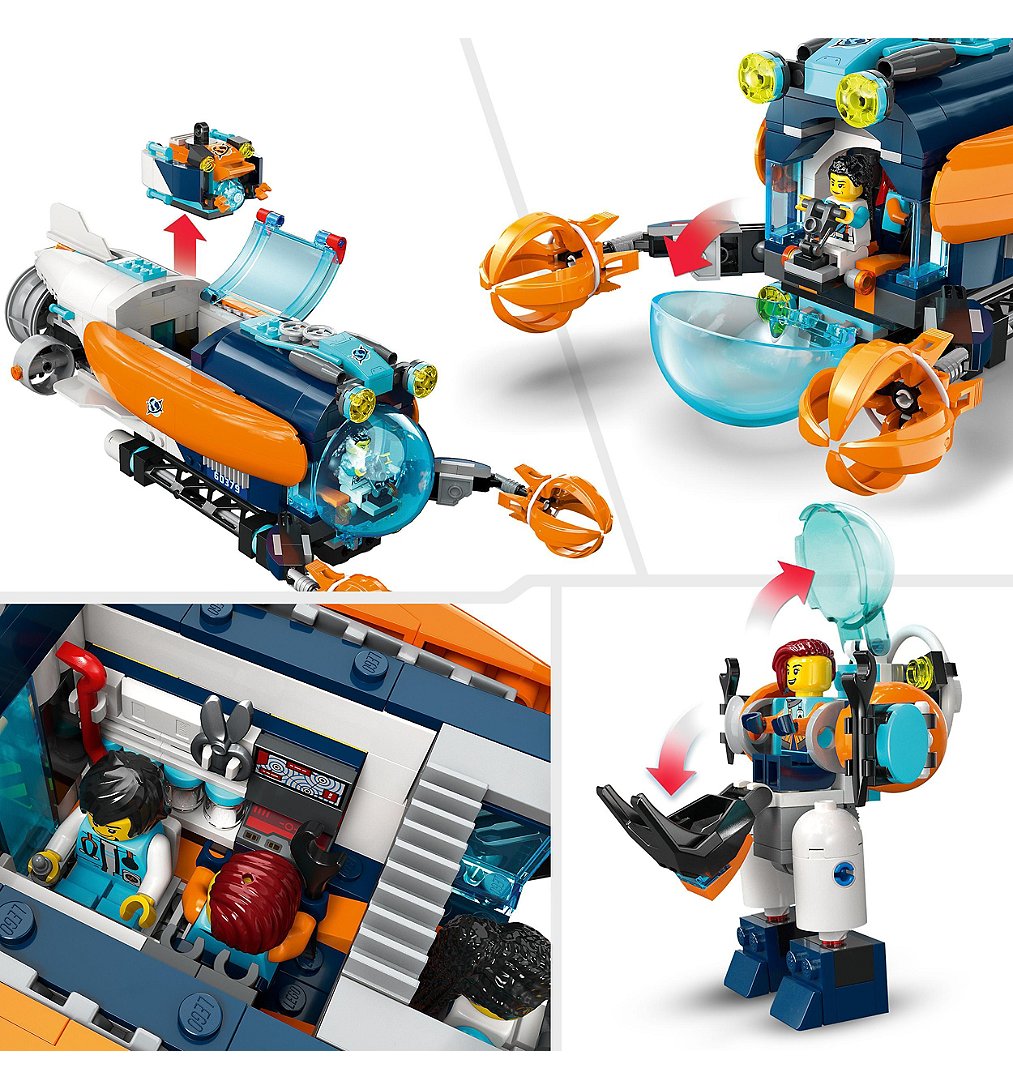 | Plus produit | Riche en fonctionnalités, le set dexception Le sous-marin dexploration en eaux profondes LEGO® City promet une infinité daventures dexploration. |