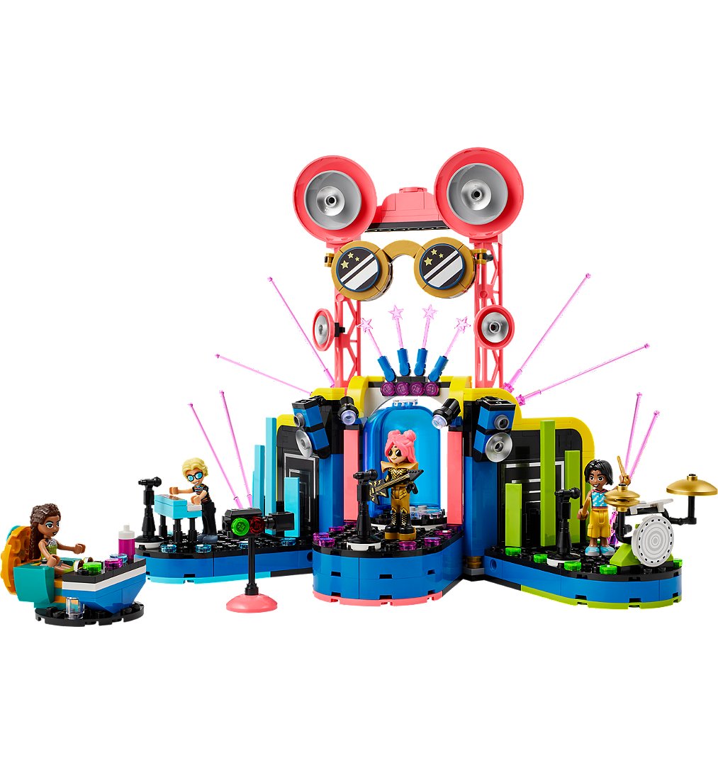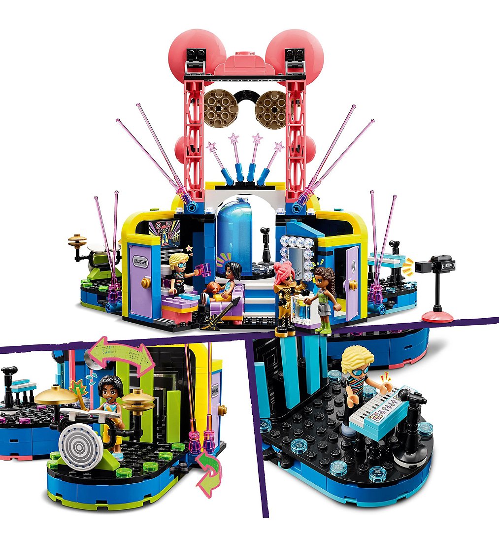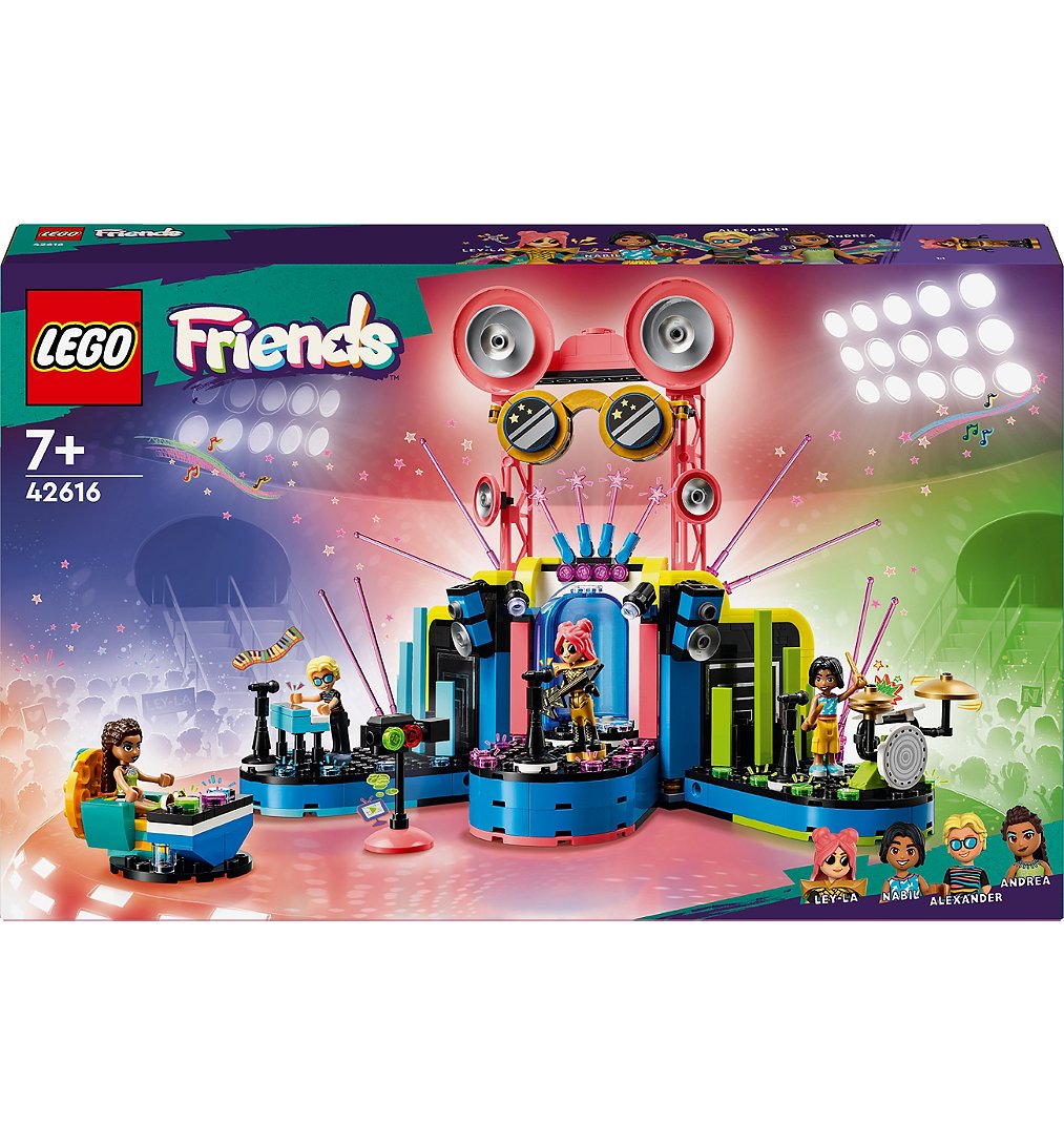 | La boîte contient | • Organiser un tremplin musical – Le spectacle musical de Heartlake City LEGO® Friends inclut 4 personnages, une scène et de nombreux accessoires, qui en font un beau cadeau à offrir à des filles et des garçons dès 7 ans• 3 musiciens et des fonctions rotatives – Les enfants peuvent créer une infinité d’histoires autour des musiciens en utilisant la fonction d’apparition de la chanteuse et les engrenages spéciaux qui font bouger le claviériste et le batteur• 4 personnages LEGO® Friends - Inclut Andréa, un personnage culte de Friends devenu juré d’un concours musical à l’âge adulte, la chanteuse Ley-La, le batteur Nabil et le claviériste Alexander• Idéal pour le jeu de rôle – Les enfants créent leurs propres histoires à l’aide des accessoires, dont une guitare, des chaussures, une perruque et des épaulettes pour Ley-La, un téléphone portable, une machine à café, des collations et un miroir• Un beau cadeau pour enfants à offrir pour les fêtes – Ce jouet qui contribue au développement des aptitudes sociales et émotionnelles est parfait pour les enfants qui aiment le jeu d’imagination et les tremplins musicaux• Des sets qui favorisent la créativité – Découvrez les autres sets de construction amusants de la gamme LEGO® Friends (vendus séparément)• Dimensions – Un set de 669 pièces avec une scène principale qui mesure plus de 22 cm de haut, 28 cm de large et 17 cm de profondeur |
