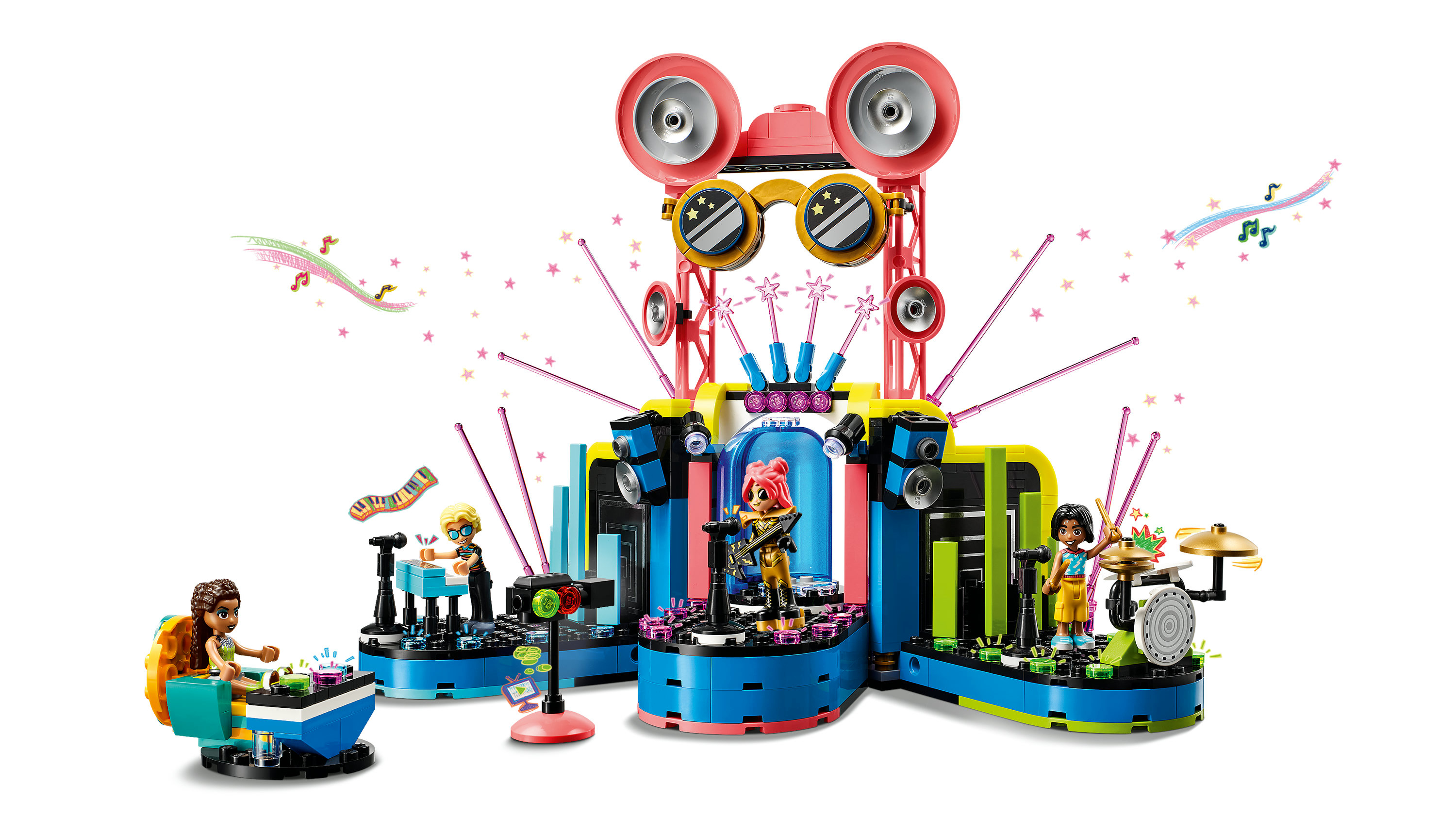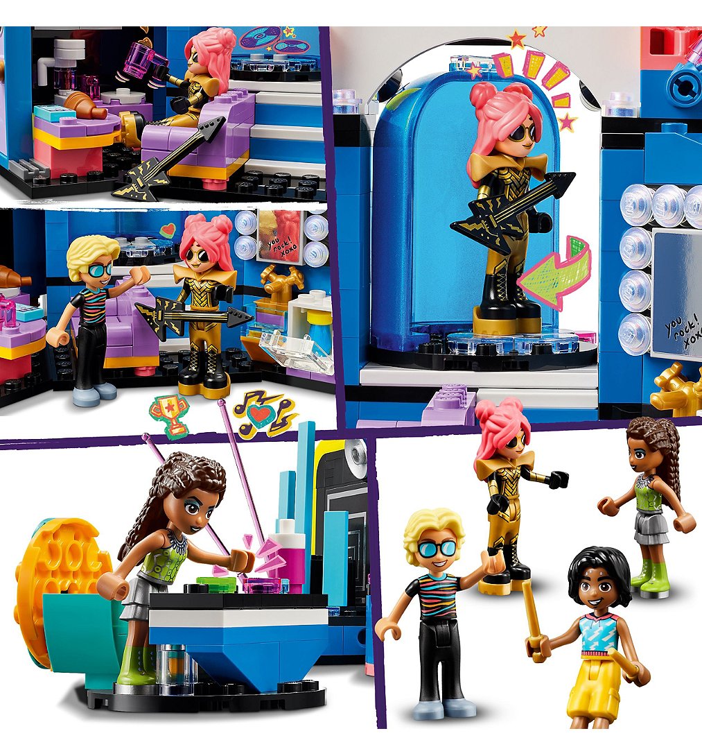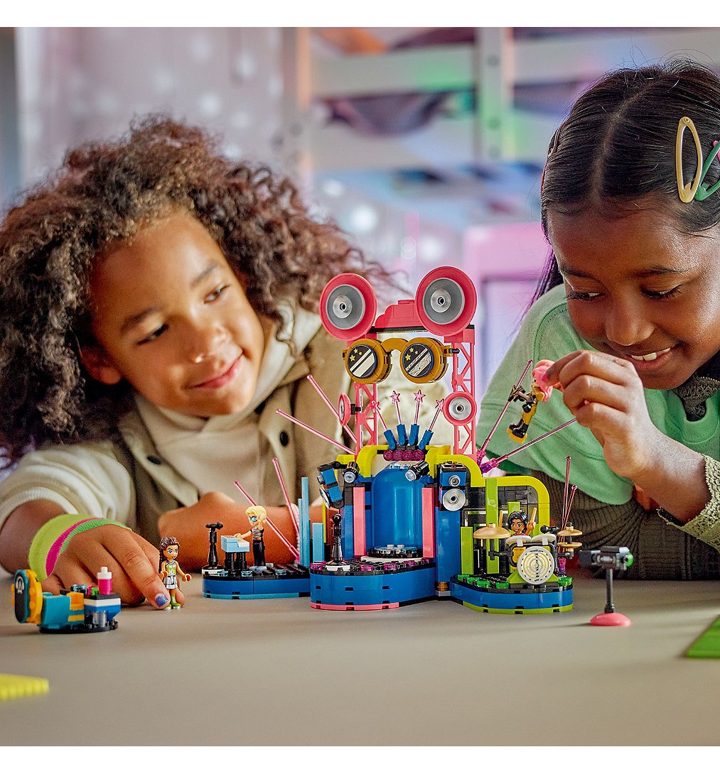 | La boîte contient | • Organiser un tremplin musical – Le spectacle musical de Heartlake City LEGO® Friends inclut 4 personnages, une scène et de nombreux accessoires, qui en font un beau cadeau à offrir à des filles et des garçons dès 7 ans• 3 musiciens et des fonctions rotatives – Les enfants peuvent créer une infinité d’histoires autour des musiciens en utilisant la fonction d’apparition de la chanteuse et les engrenages spéciaux qui font bouger le claviériste et le batteur• 4 personnages LEGO® Friends - Inclut Andréa, un personnage culte de Friends devenu juré d’un concours musical à l’âge adulte, la chanteuse Ley-La, le batteur Nabil et le claviériste Alexander• Idéal pour le jeu de rôle – Les enfants créent leurs propres histoires à l’aide des accessoires, dont une guitare, des chaussures, une perruque et des épaulettes pour Ley-La, un téléphone portable, une machine à café, des collations et un miroir• Un beau cadeau pour enfants à offrir pour les fêtes – Ce jouet qui contribue au développement des aptitudes sociales et émotionnelles est parfait pour les enfants qui aiment le jeu d’imagination et les tremplins musicaux• Des sets qui favorisent la créativité – Découvrez les autres sets de construction amusants de la gamme LEGO® Friends (vendus séparément)• Dimensions – Un set de 669 pièces avec une scène principale qui mesure plus de 22 cm de haut, 28 cm de large et 17 cm de profondeur |