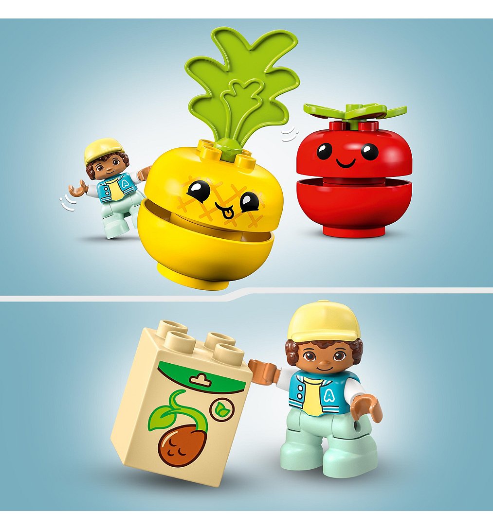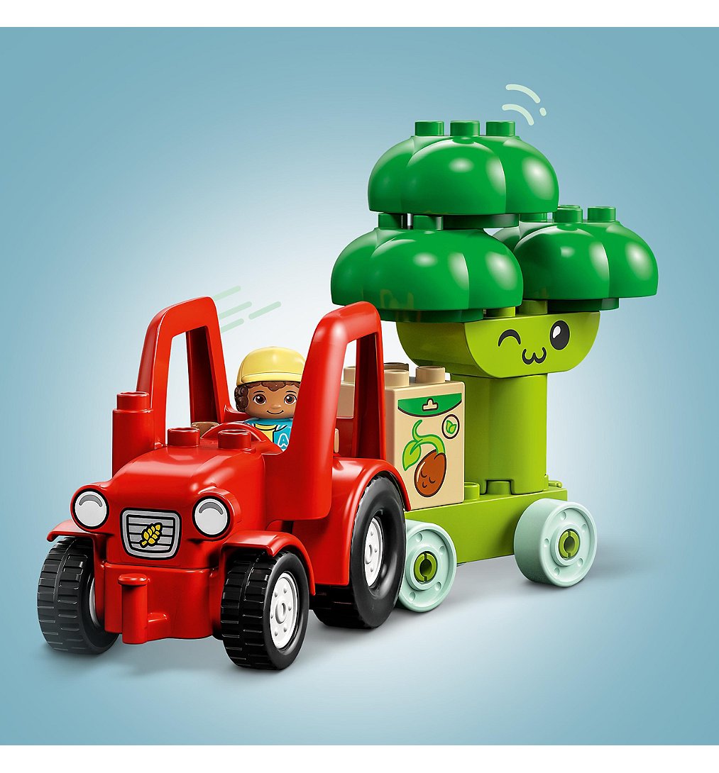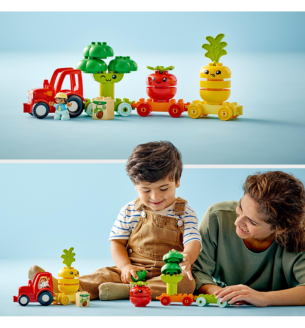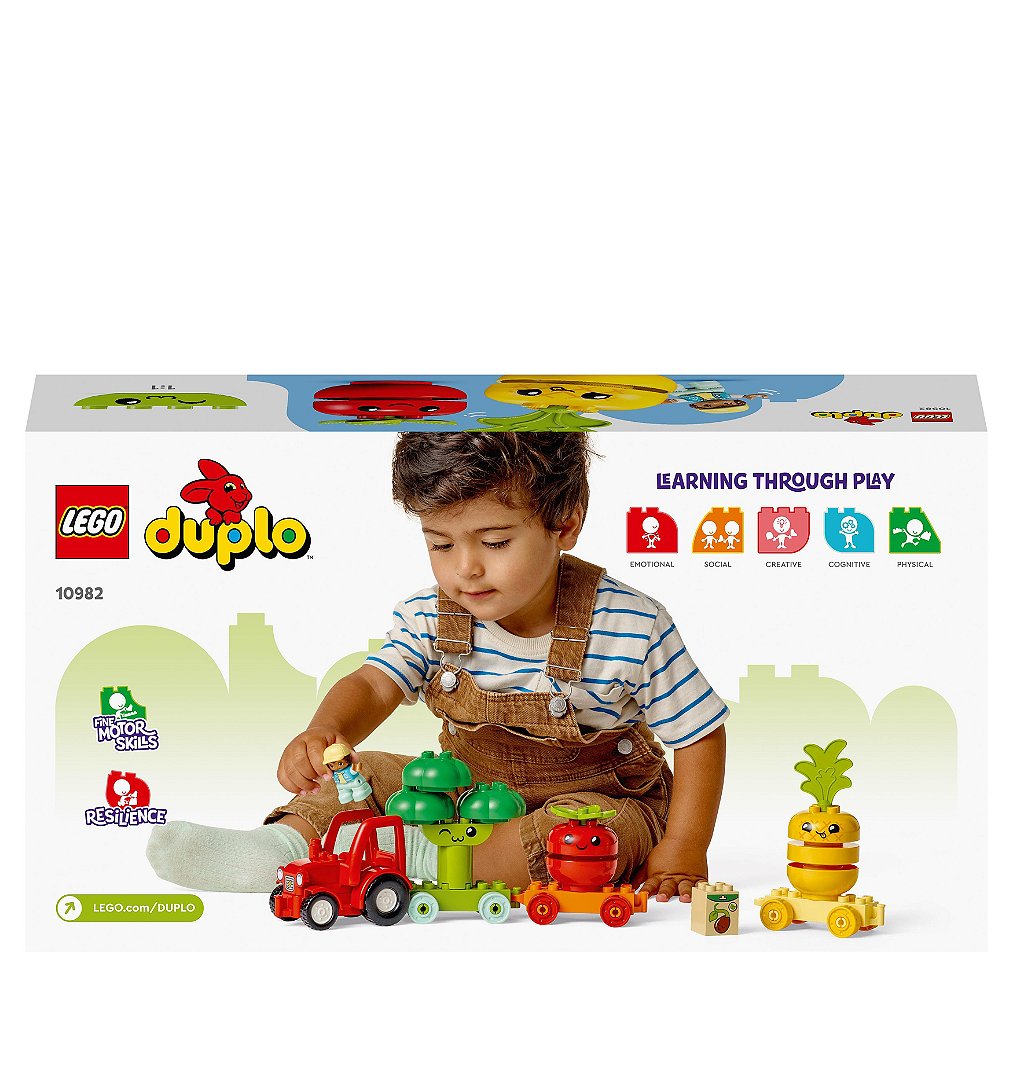 | La boîte contient | • Un jeu à la ferme pour les petits gourmets – Le tracteur des fruits et légumes LEGO® DUPLO® My First (10982) développe la motricité fine et apprend aux enfants comment poussent les plantes • Un jouet sur le thème de la nourriture pour les tout-petits – Inclut à tracteur à manœuvrer, 3 remorques de couleurs différentes, des briques pour construire un brocoli, une tomate et un ananas, ainsi que la figurine d’un jeune fermier • Des jouets pour apprendre en s’amusant – Les tout-petits aident le jeune fermier à récolter les fruits et légumes avec son tracteur à manœuvrer, puis les trient sur les remorques colorées • Un cadeau pour les enfants qui aiment les jouets sur le thème de la ferme – Offrez ce jeu d’éveil aux fermiers en herbe de 18 mois et plus pour un anniversaire, une occasion spéciale ou juste pour leur faire plaisir • De grandes pièces pour les petites mains – Le tracteur et ses remorques mesurent plus de 17 cm de haut, 45 cm de long et 7 cm de large • Cultiver l’imagination – Multipliez les options de jeu de construction sur le thème de la culture biologique avec les sets La carotte qui pousse (10981), Le marché bio (10983) et Le jardin bio (10984) • Instructions étape par étape – Des instructions illustrées faciles à suivre sont incluses dans la boîte et figurent également dans l’application LEGO® Builder, pour accompagner ceux qui débutent dans la construction LEGO • Jouer et construire ensemble – Ce set sur le thème de la ferme aide les enfants d’âge préscolaire à développer leur motricité fine et leurs connaissances des plantes et de l’alimentation en construisant et jouant avec leurs parents et éducateurs • Qualité constante – Les sets de jeu LEGO® DUPLO® sont conformes aux normes industrielles les plus exigeantes. Ils sont faciles à saisir, assembler et séparer par les petites mains, et cela depuis 1969 • Sécurité assurée – Les briques et les pièces des sets LEGO® DUPLO® sont soumises à des tests de chute, de chaleur, d’écrasement et de torsion, puis analysées afin de s’assurer qu’elles répondent aux normes de sécurité les plus rigoureuses |