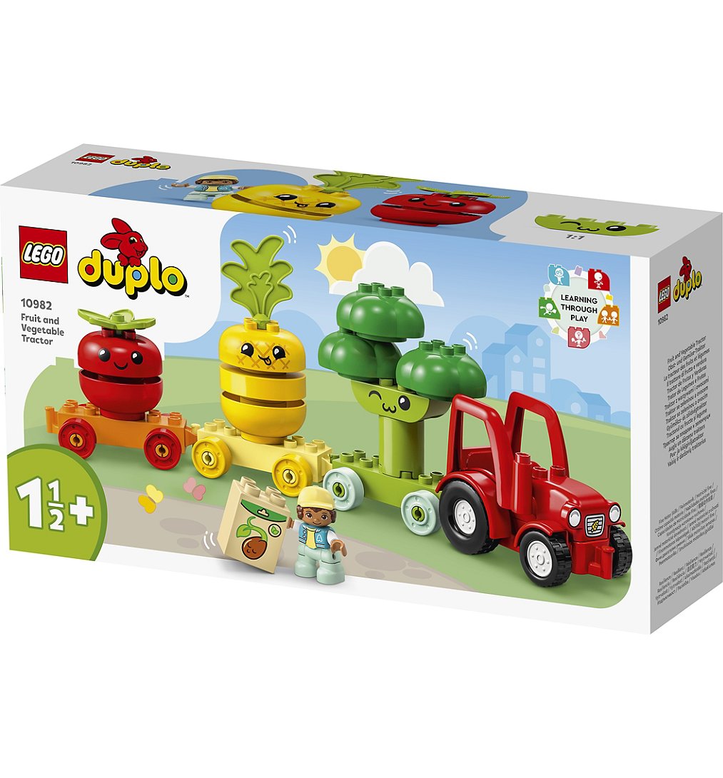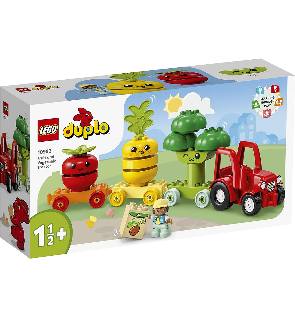 Le jouet d'apprentissage LEGO DUPLO My First Le Tracteur des Fruits et Légumes (10982) pour les tout-petits âgés de 1,5 à 3 ans offre de nombreuses façons amusantes de développer l'apprentissage des enfants avec le plaisir des briques DUPLO. L'ensemble comprend un tracteur et 3 remorques pour les enfants âgés de 18 mois et plus, qui pourront ainsi développer leur motricité tout en apprenant comment les fruits et légumes poussent et en empilant les briques pour faire pousser les plantes. Les enfants d'âge préscolaire peuvent associer la plante à sa remorque ou faire preuve de créativité et d'expression personnelle pour mélanger les couleurs ou même échanger les visages ! Tous les jouets LEGO DUPLO sont spécialement conçus avec des récits amusants, des couleurs vives, des personnages attachants et beaucoup de détails pour développer les compétences précoces des petits apprenants. Cet ensemble est compatible avec les autres jouets de construction éducatifs sur le thème de la culture biologique. Le tracteur et ses remorques mesurent plus de 17 cm de haut, 45 cm de long et 7 cm de large. Contient 19 pièces.