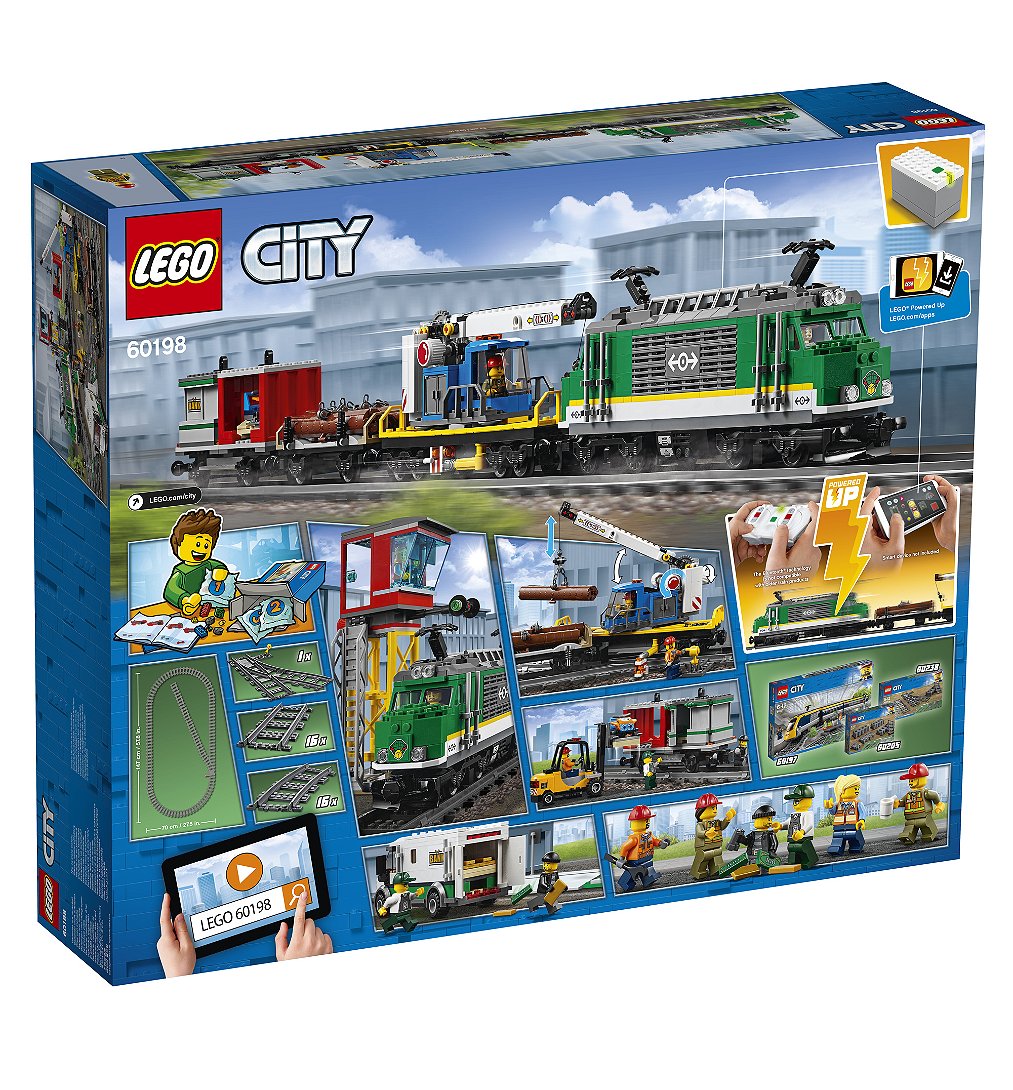 Ce train télécommandé LEGO City Le Train de Marchandises (60336) est rempli de détails et de caractéristiques réalistes dont une locomotive avec la technologie LEGO Powered Up, c'est le moment de vivre des aventures ferroviaires sans fin ! C'est un modèle épique destiné aux enfants de 7 ans et plus passionnés par les transports et les trains ! Ce jouet de train pour enfants LEGO City et sa puissante locomotive comportent 3 jouets de wagon impressionnants : une plateforme avec 2 conteneurs, un wagon ouvert, un porte-véhicules à 2 ponts. Plus des accessoires amusants tels que des rails LEGO, une grue télescopique, 2 jouets de voitures électriques, une borne de chargement, des marchandises et 6 minifigurines LEGO. Sans oublier les éléments des personnages comme le tournevis, la pelle, le talkie-walkie, le téléphone et les fruits et légumes. Les enfants s'amuseront à vivre ce jeu de rôle en posant les différents personnages à la place du conducteur du porte-véhicules, en chargeant la cargaison sur la plateforme ou en montant dans le wagon ouvert à la station de recharge des véhicules électriques. Les enfants doivent être à l'heure, le train n'attend pas, et lorsque le voyage sera terminé, ils pourront exposer fièrement ce circuit de train LEGO City dans leur chambre. Les ensembles LEGO City transforment les enfants en protagonistes d'histoires passionnantes qui reflètent la vie réelle de manière amusante. Cet étonnant jeu de construction contient un guide d'instructions étape par étape facile à suivre pour chaque modèle. Les enfants peuvent construire seuls ou se faire rejoindre par des amis et de la famille. Ce set de train télécommandé LEGO est un cadeau d'anniversaire, de Noël ou pour toute autre occasion pour les garçons et les filles qui aiment les trains et qui rêvent d'être conducteur de train. Contient 1 153 pièces