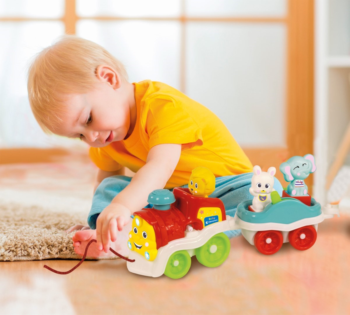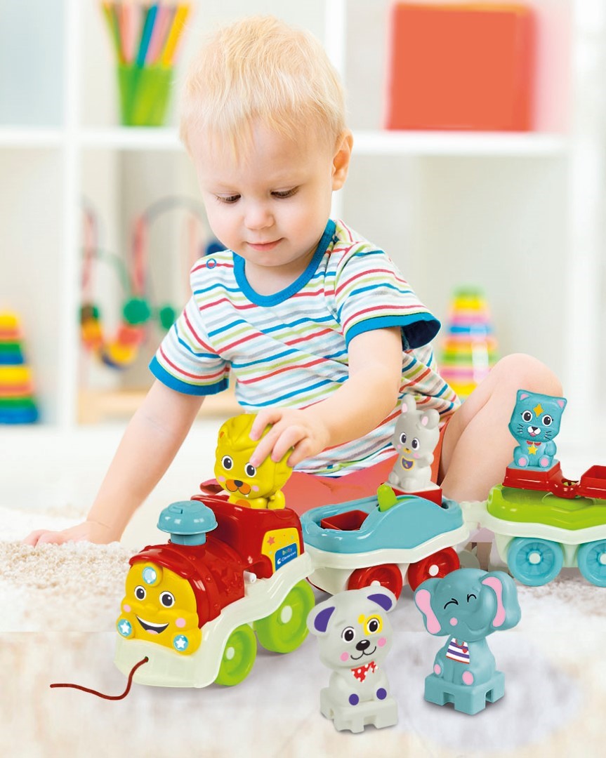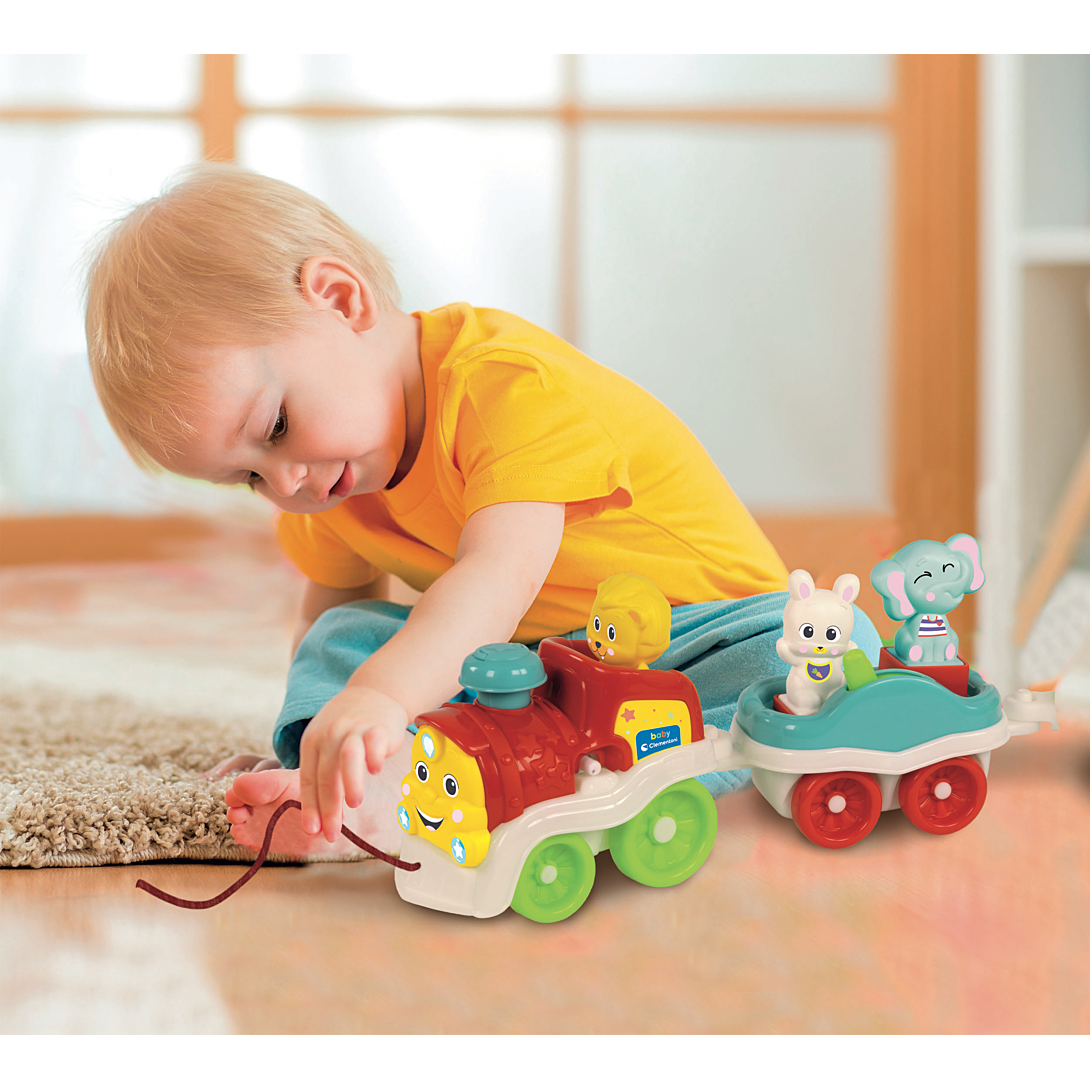 • Un petit train amusant, rempli d’activités pour divertir les plus petits tout en stimulant leur imagination. • En mettant l'un des 5 animaux sur la locomotive et en appuyant sur la cheminée, l’enfant pourra écouter des phrases, le cri des animaux, des sons et des comptines amusantes. • L'enfant pourra aussi s'amuser avec les activités mécaniques sur les wagons et tirer le train, développant ainsi sa coordination et sa motricité. • La correspondance entre l’animal, son cri et son nom aide l’enfant à comprendre la relation de cause à effet, stimulant ainsi son développement cognitif.