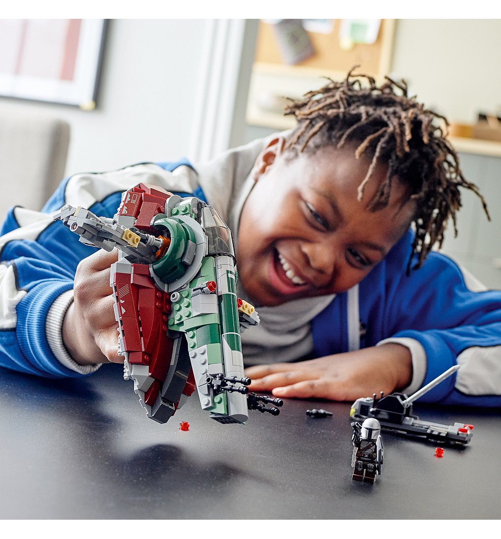 Plus produit Les fans de Star Wars : Le Mandalorien vont adorer cette version en briques LEGO® du vaisseau de Boba Fett et du véhicule de transport pour jouer et décorer leur chambre.