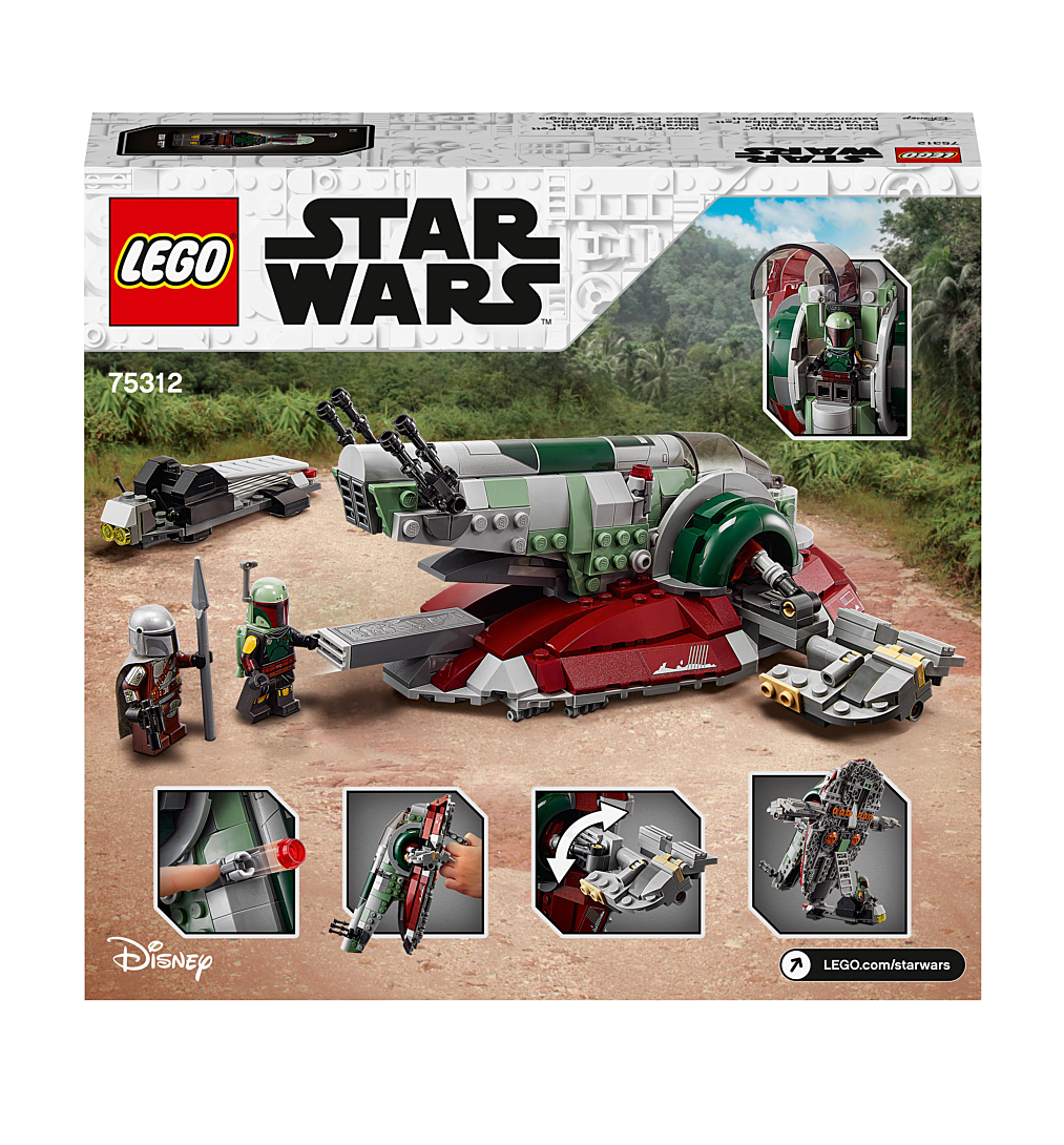 La boîte contient • Les enfants peuvent rejouer les scènes de bataille de la saison 2 de Star Wars : Le Mandalorien et inventer leurs propres missions de chasseurs de primes avec l’incroyable vaisseau de Boba Fett (75312) en briques LEGO®. • Inclut 2 figurines LEGO® - Boba Fett avec un fusil et le Mandalorien avec son fusil blaster et une lance en beskar - ainsi qu’une brique « carbonite » pour multiplier les possibilités de jeu créatif. • Doté d’une poignée pour le faire voler, le vaisseau comprend un cockpit qui s’ouvre pour les figurines LEGO®, des ailes rotatives, 2 fusils à tenons, 2 canons doubles pivotants (qui ne tirent pas) et un compartiment pour la brique « carbonite ». • Ce modèle inclut également un transporteur pour déplacer le vaisseau au sol dans les scénarios de jeu. Une fois la mission terminée, il sert de présentoir et permet aux jeunes constructeurs de l’exposer à la verticale, en position de vol. • Ce set de construction propose une activité créative amusante à vivre seul ou à plusieurs. C’est un formidable cadeau à offrir à un enfant de 9 ans et plus pour un anniversaire, les fêtes ou toute autre occasion. • Le vaisseau mesure plus de 8 cm de haut, 20 cm de long et 20 cm de large. Ce superbe objet de décoration ne manquera pas d’impressionner les amis de votre constructeur en herbe. • Vous souhaitez offrir un jouet de construction à un enfant qui débute avec les sets LEGO® • Ce jouet Star Wars™ de 593 pièces est livré avec des instructions étape par étape qui permettent aux enfants de construire avec la confiance d’un Jedi. • Les sets LEGO® Star Wars™ sont conçus pour fasciner les fans de tout âge, qu’ils souhaitent rejouer des scènes culte, créer leurs propres histoires ou tout simplement exposer leurs reproductions en briques. • Conformes aux normes les plus rigoureuses du secteur du jouet, les éléments LEGO® sont compatibles pour permettre un assemblage simple et solide, à chaque fois. • Les briques et pièces LEGO® sont soumises à des tests rigoureux pour s’assurer qu’elles sont conformes aux normes de sécurité les plus strictes au monde.