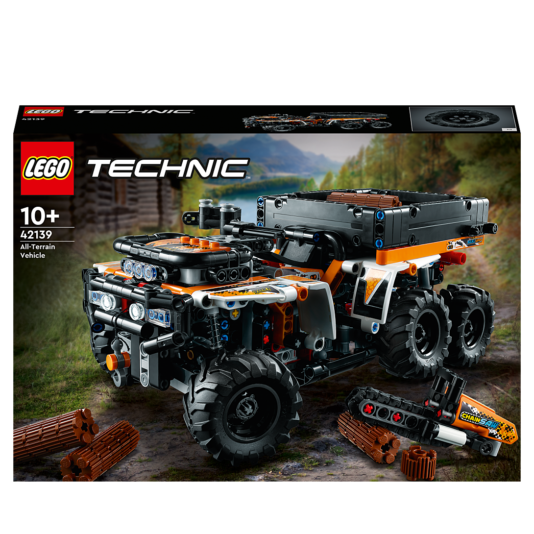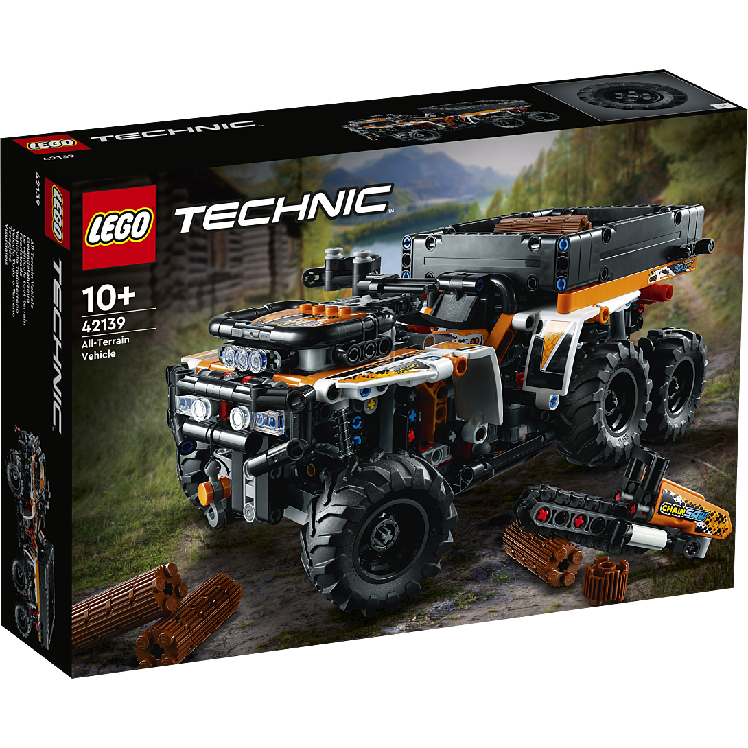 La boîte contient • Apprendre en s’amusant – Les enfants peuvent explorer les concepts de l’ingénierie en construisant Le véhicule tout-terrain LEGO® Technic 42139 • Des fonctions réalistes – Ce véhicule est le premier tout-terrain LEGO® Technic à 6 roues. Il inclut de nombreuses fonctions authentiques, telles qu’un moteur à pistons mobiles et une boîte à 2 vitesses (+ point mort) • Une action ancrée dans le réel – Découvrez le treuil et la benne basculante, comme sur un véritable véhicule tout-terrain • Des accessoires pour tout-terrain – Ce set de construction inclut une tronçonneuse et 20 petites bûches qui s’assemblent pour former de longues bûches, prêtes à être transportées dans le tout-terrain • Autocollants – Le set inclut des autocollants avec lesquels les enfants peuvent décorer leur véhicule tout-terrain • Pour 10 ans et plus – Vous recherchez un cadeau pour un enfant • Ce véhicule tout-terrain propose un défi de construction à tous les enfants de 10 ans et plus • Dimensions – Le modèle mesure plus de 11 cm de haut, 27 cm de long et 13 cm de large • Des projets de construction gratifiants – L’univers LEGO® Technic propose des modèles à construire avancés pour les fans de LEGO prêts à relever de nouveaux défis de construction • La qualité assurée – Les éléments LEGO® Technic sont conformes aux normes industrielles les plus rigoureuses ; ils sont compatibles entre eux et s’assemblent et se séparent parfaitement • La sécurité avant tout – Les éléments LEGO® Technic sont soumis à des tests de chute, de chaleur, d’écrasement et de torsion, puis analysés afin de s’assurer qu’ils satisfont aux normes de sécurité les plus strictes