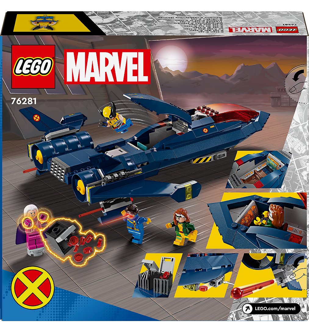 Le LEGO Marvel Le X-Men X-Jet (76281) est le moyen de transport ultime pour les fans d'avions super cool, de jouets LEGO Marvel à construire et de la série TV Marvel X-Men ’97. Si vous cherchez des jouets de construction LEGO Marvel tendance à offrir comme cadeau pour les enfants âgés de 8 ans et plus, le jouet du chasseur X-Jet X-Men est parfait pour élever leur statut de Super-Héros à de nouveaux sommets. Ce kit de modélisation d'avion spectaculaire, basé sur le X-Jet de la série X-Men ’97, inspirera d'innombrables aventures en haute altitude avec ses figurines Cyclops, Rogue, Magneto et Wolverine. Ce jouet d'action à construire présente deux cockpits avec de la place pour 4 figurines, 2 lanceurs de tenons de chaque côté de l'avion et 2 lanceurs à ressort sous les ailes. Le modèle d'avion comprend également 2 conteneurs amovibles où les enfants peuvent stocker des tenons de rechange et les longues griffes de Wolverine lorsqu'elles ne sont pas attachées à la figurine. Pour plus de plaisir numérique, les constructeurs peuvent zoomer, faire pivoter les modèles en 3D et suivre leur progression à l'aide de l'application LEGO Builder, amusante et intuitive.