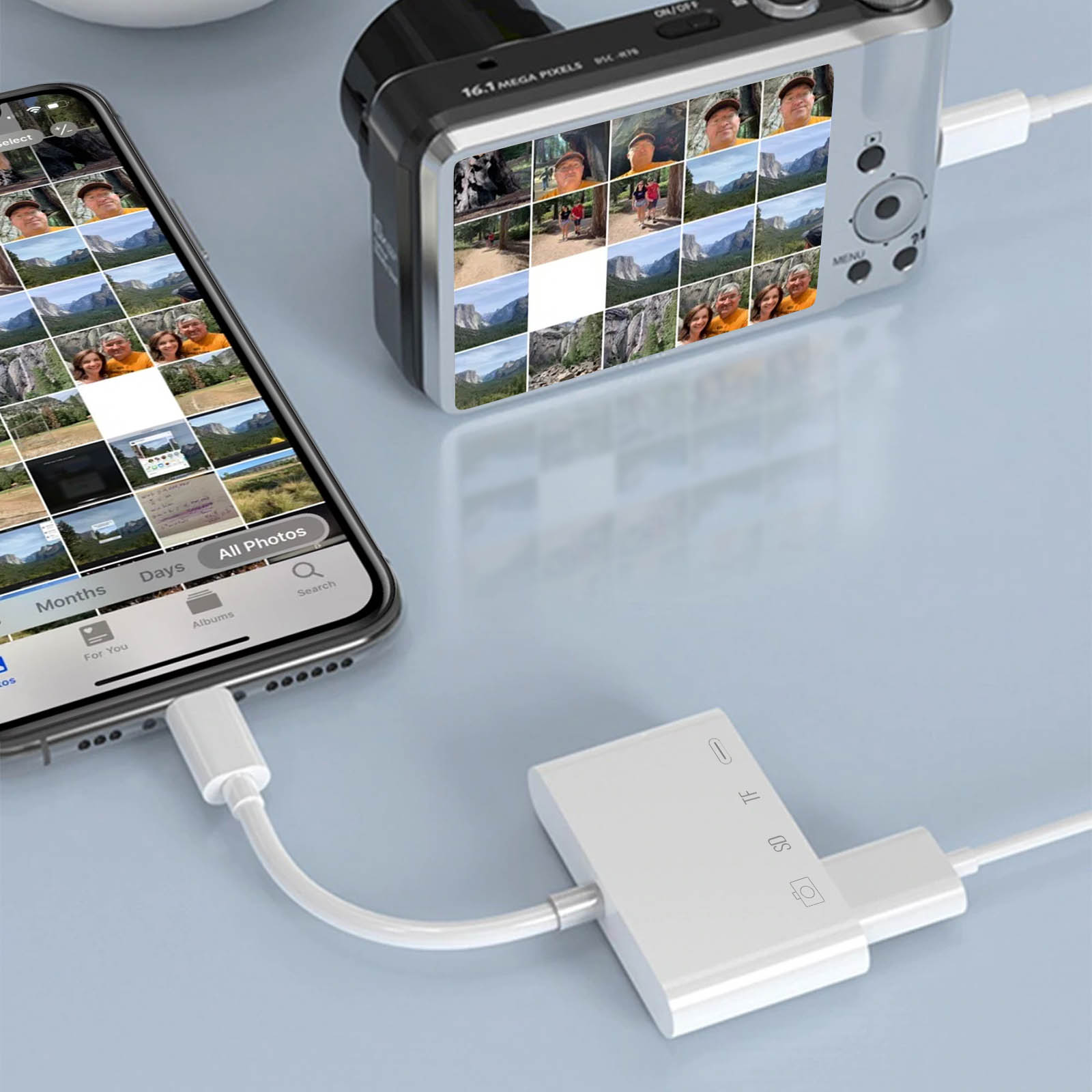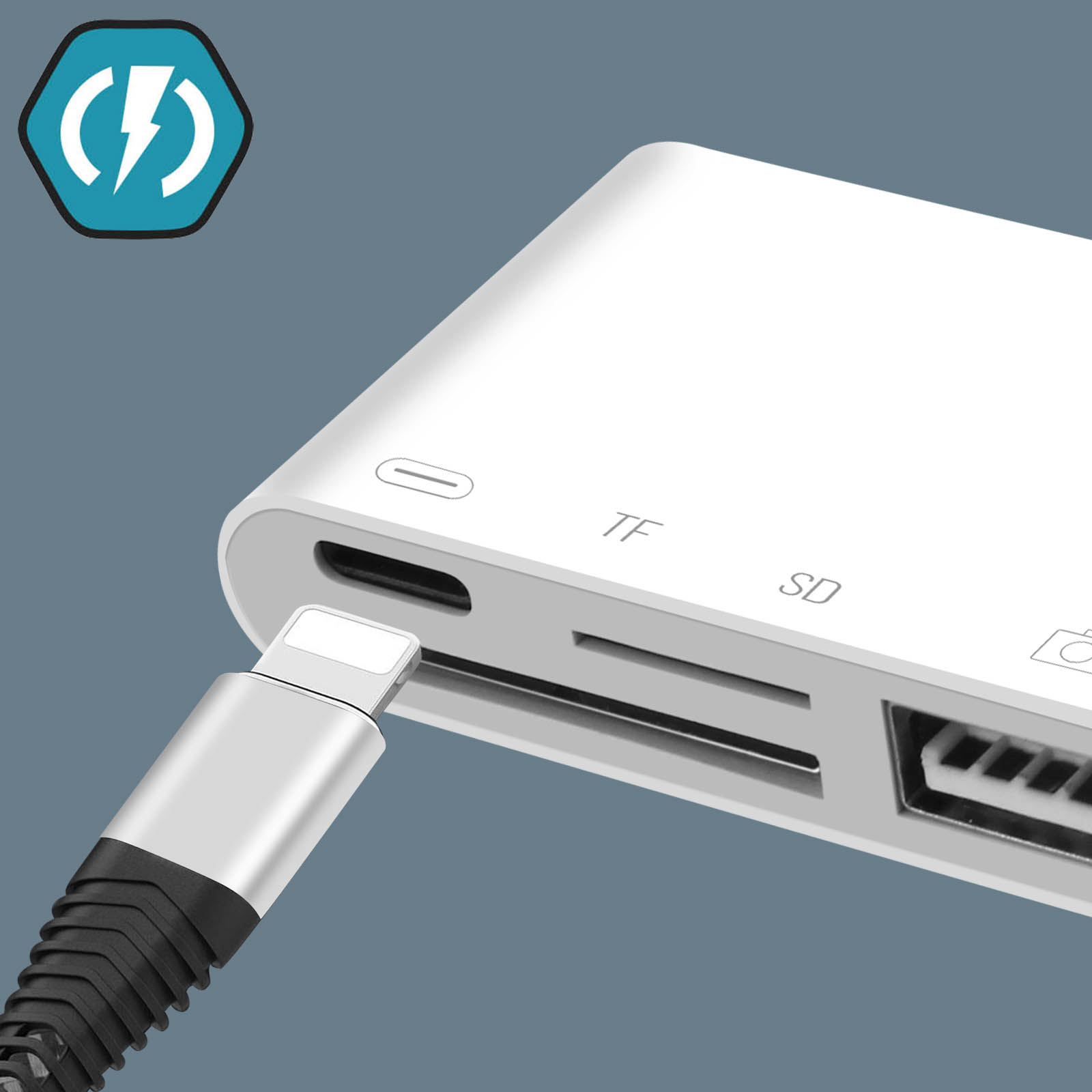 Lecteur carte iPhone / iPad Lightning vers USB / TF / Micro-SD / Lightning Blanc