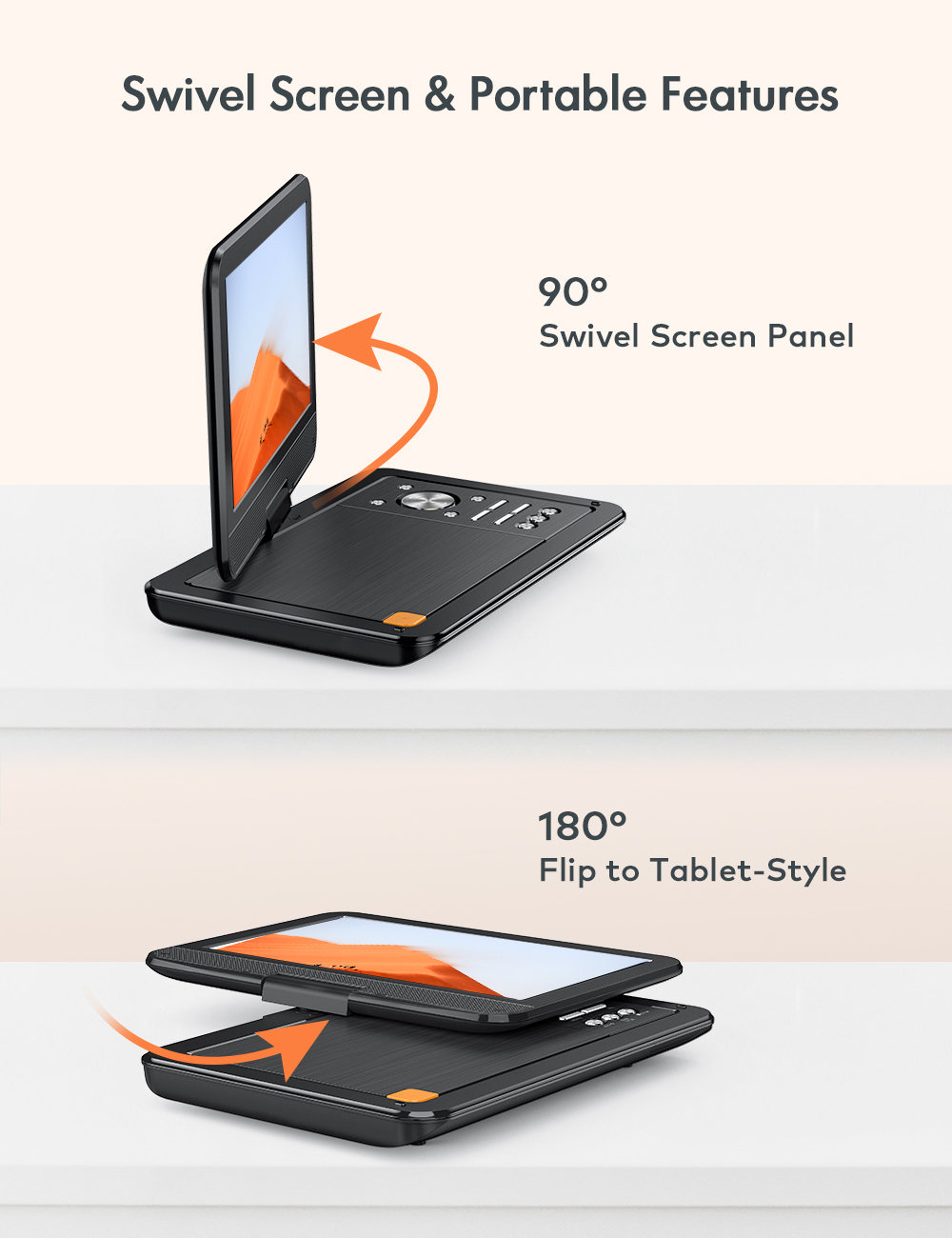 Lecteur dvd portable 12,5" Apeman PV1070 écran pivotant HD 10,5" Batterie au lithium d'autonomie de 5 heu