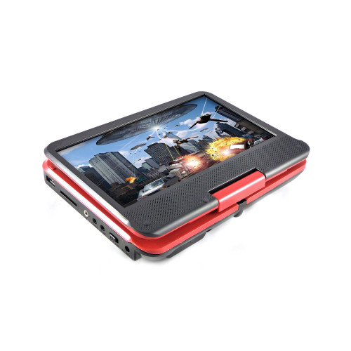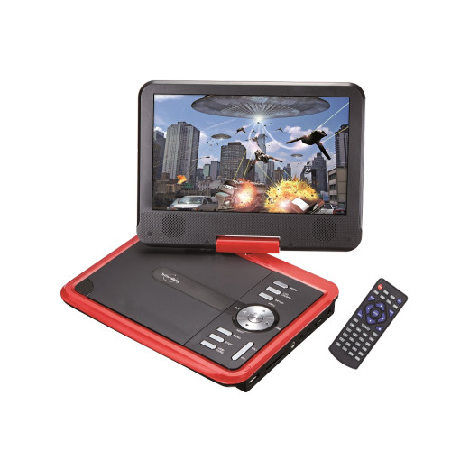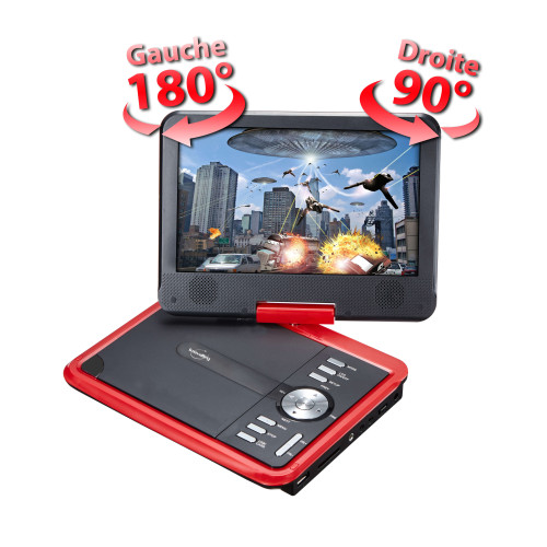 Lecteur DVD portable écran 10'' rotatif noir & rouge