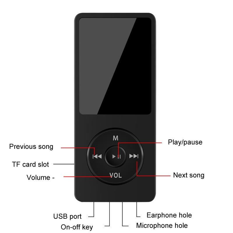 Son écran de 1.8 pouces facilite la navigation et la lecture de vos fichiers e-book au format TXT. Ce Lecteur MP3 inclut également un port USB 2.0 pour des transferts de fichiers rapides et une batterie longue durée avec seulement 2 heures de charge.