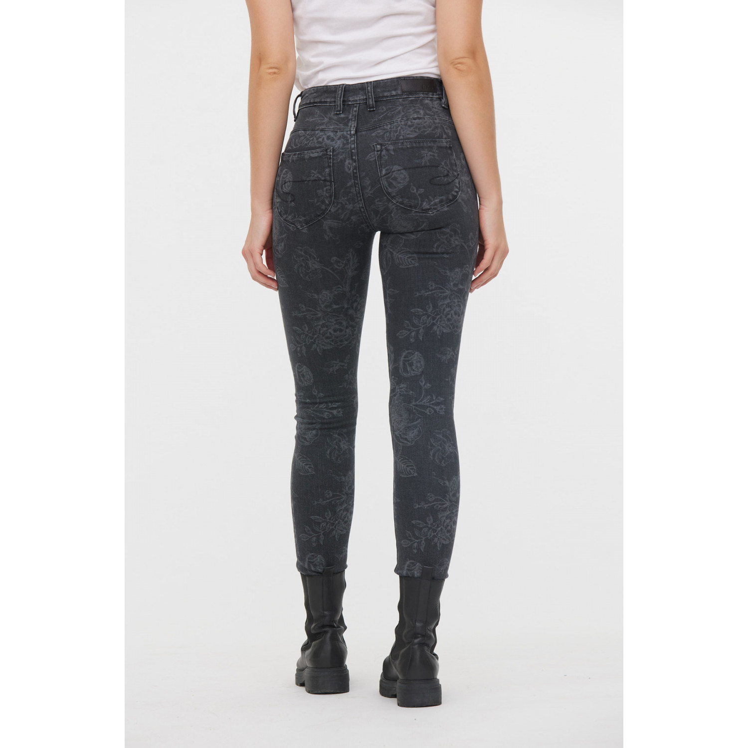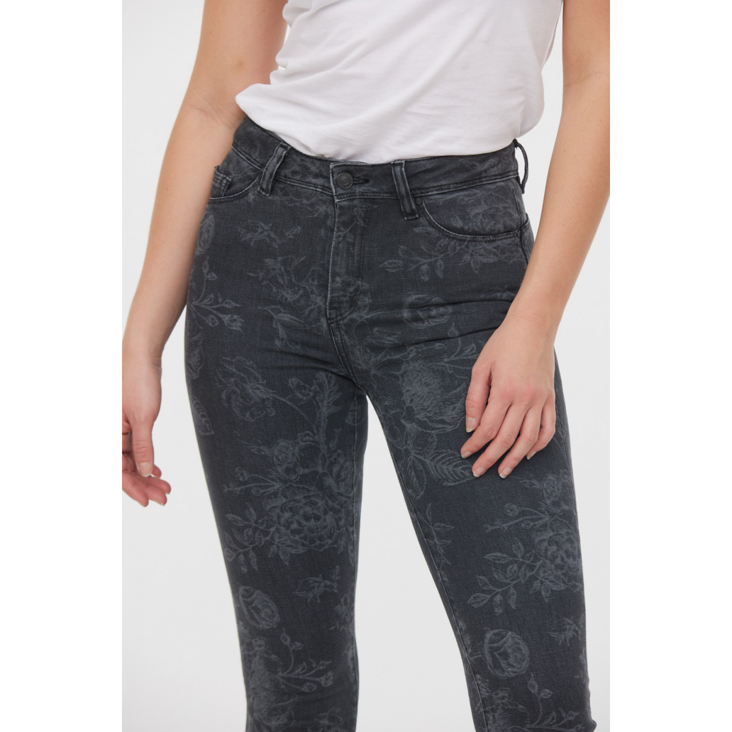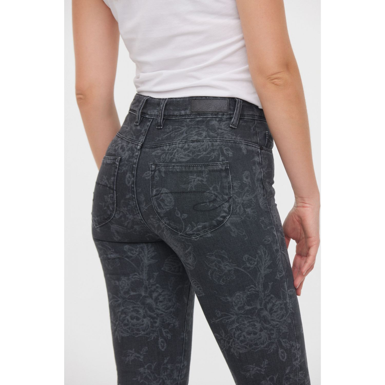 Denim slim fit effet push up allover fleur, jambes ajustées, taille medium haute, longueur 30