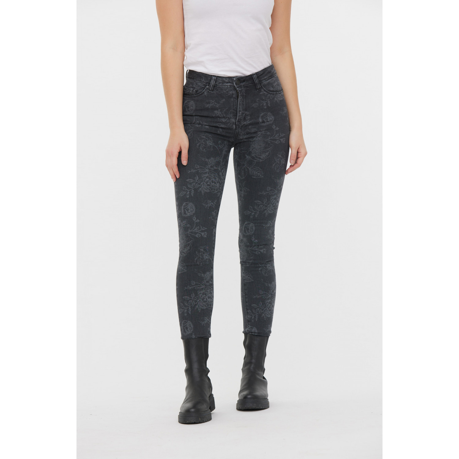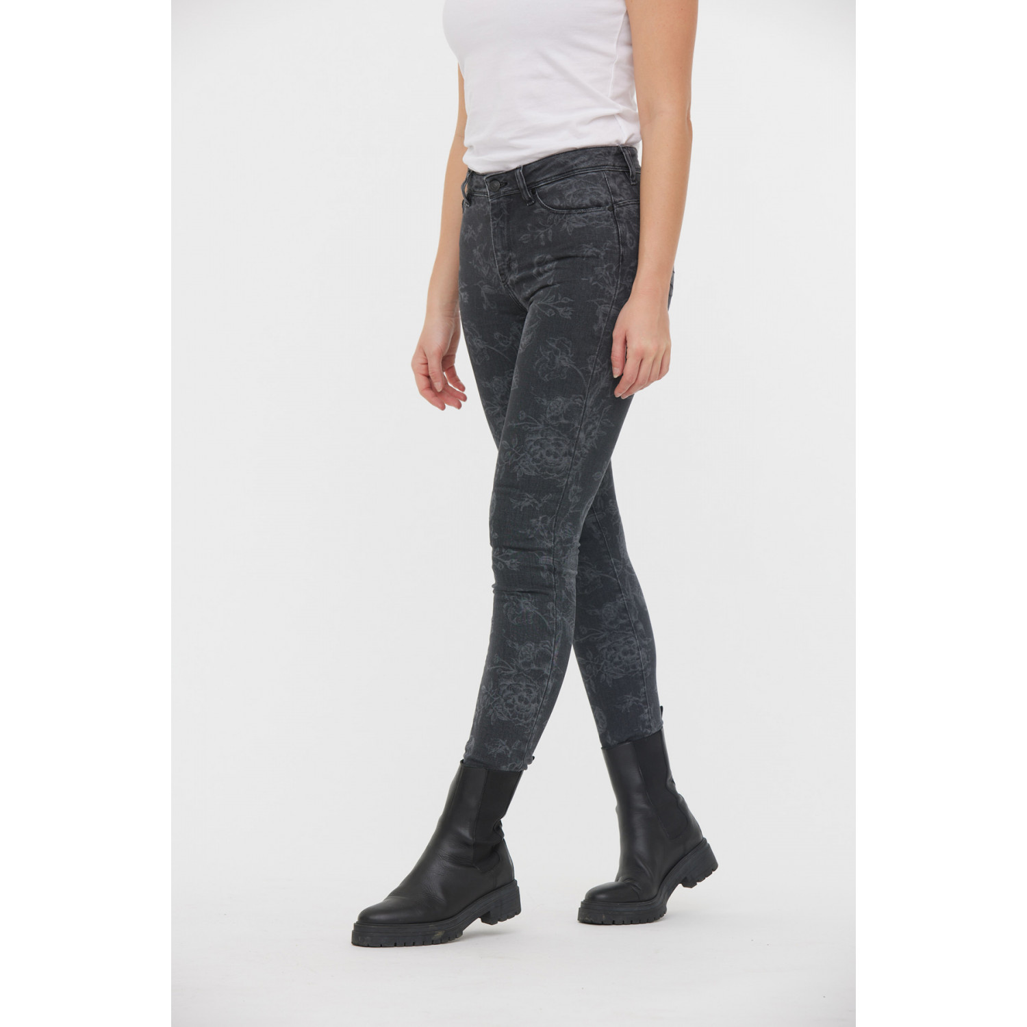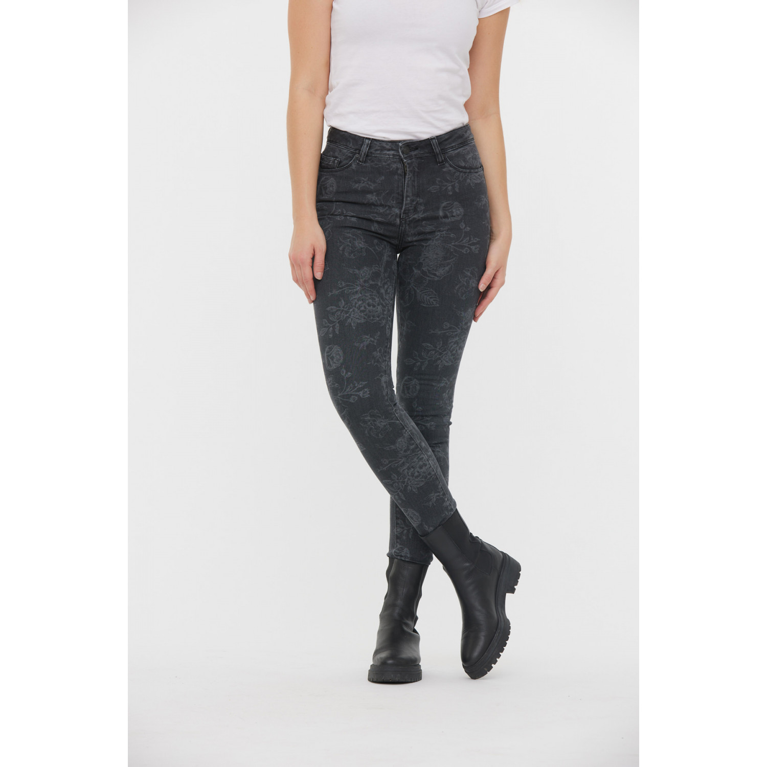 Denim slim fit effet push up allover fleur, jambes ajustées, taille medium haute, longueur 30