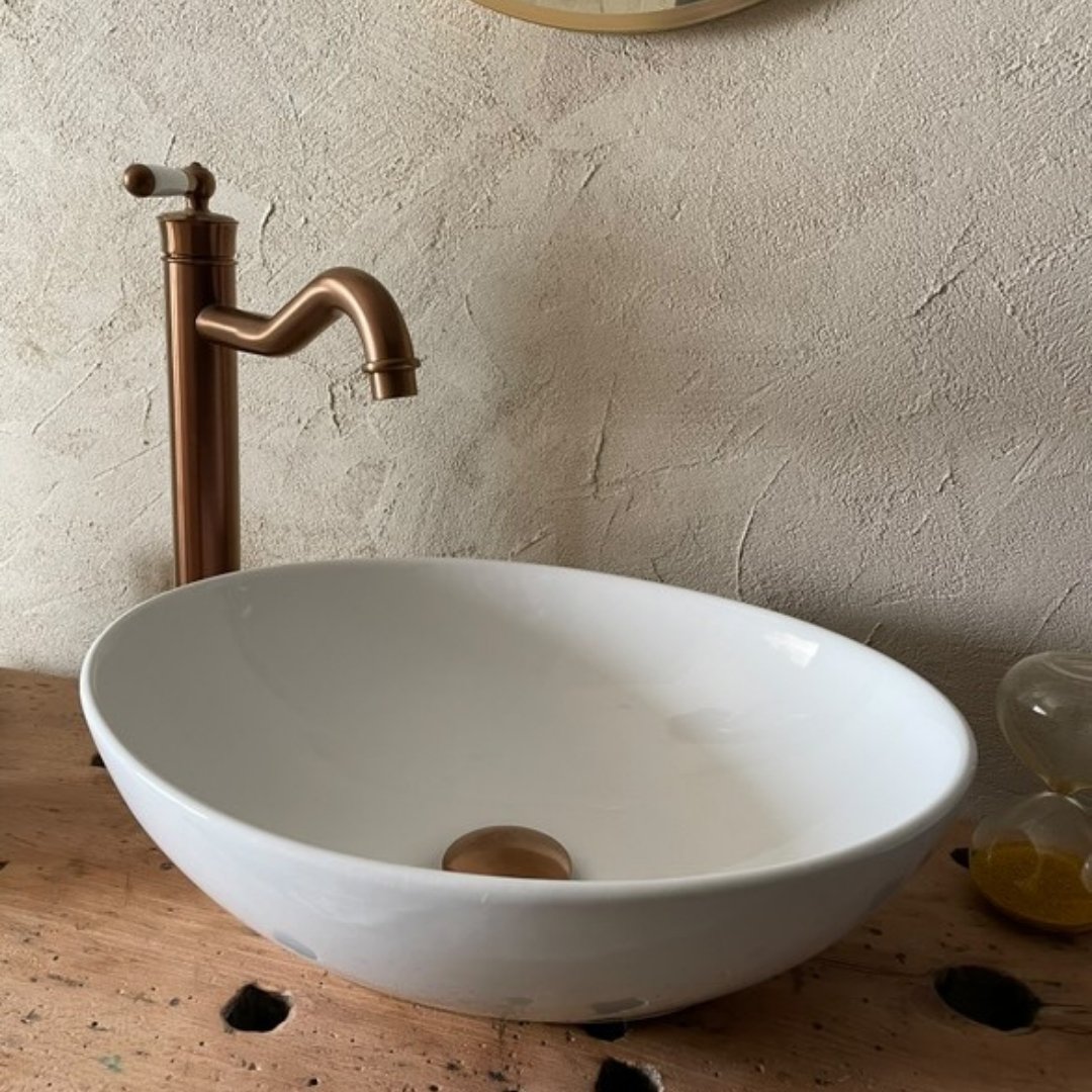 - Vidage pop-up : Une bonde ""pop up"" couleur cuivre (aussi appelée ""clic-clac"" ou ""push up"") est un système de vidage moderne et pratique qui permet d'ouvrir et de fermer votre vasque par une simple pression du doigt.