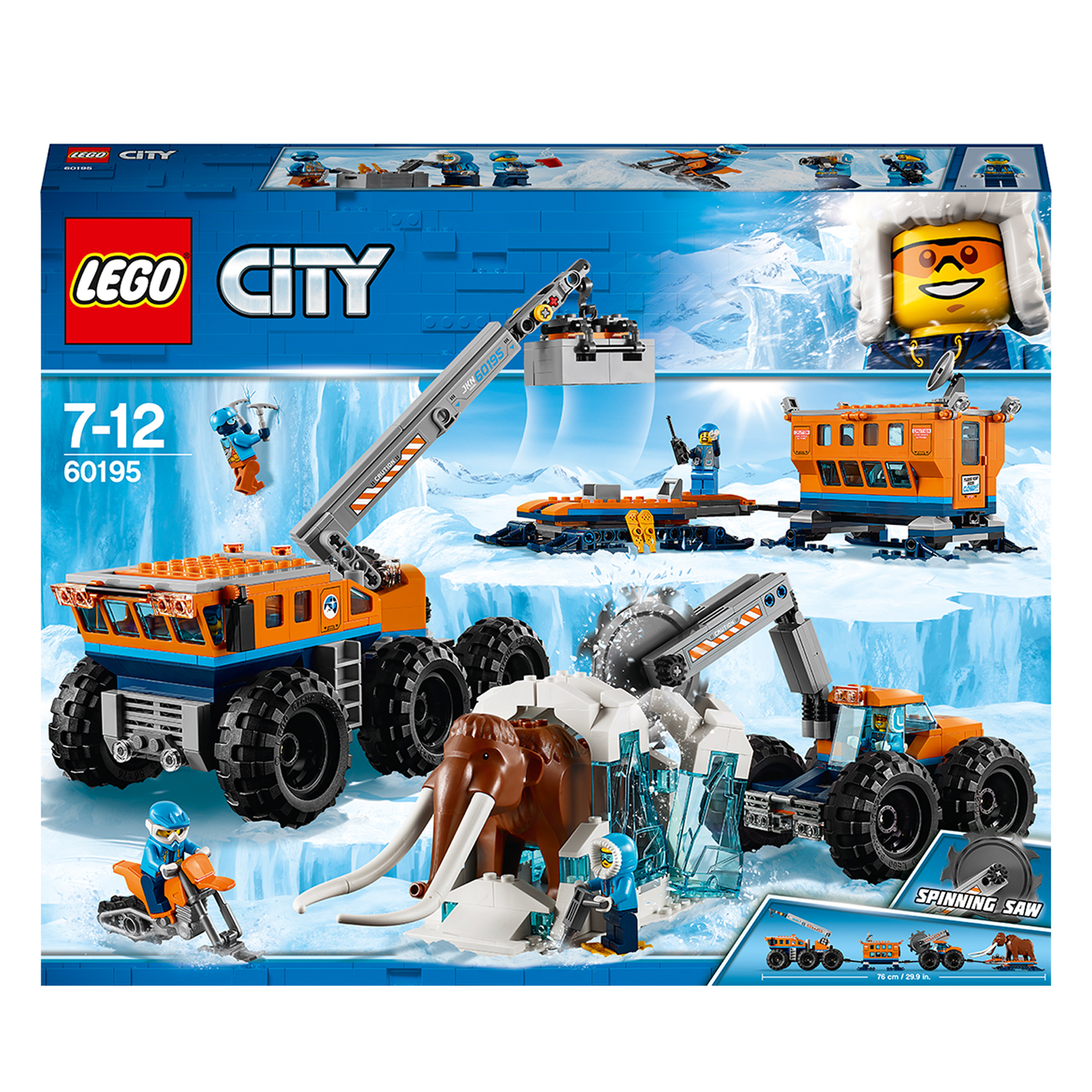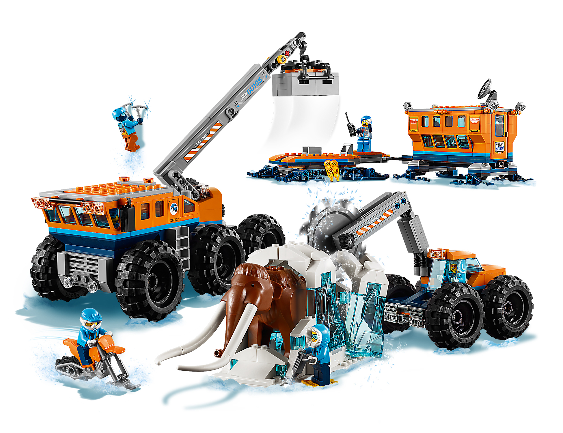 Avertis léquipe dexpédition et prépare La base arctique dexploration mobile LEGO® City 60195 pour quelle soit opérationnelle ! Une fois arrivé sur le site de fouille, installe la base et mets-toi au travail. Analyse les échantillons dans le laboratoire mobile pendant que les explorateurs fouillent la zone pour trouver dautres objets intéressants avec la motoneige. Que peut-il bien se cacher dans le bloc de glace ? Ouah ! Ce mammouth est gigantesque ! Venez tous ! Il est temps de découvrir ce qui est enfoui ici depuis tant d'années !