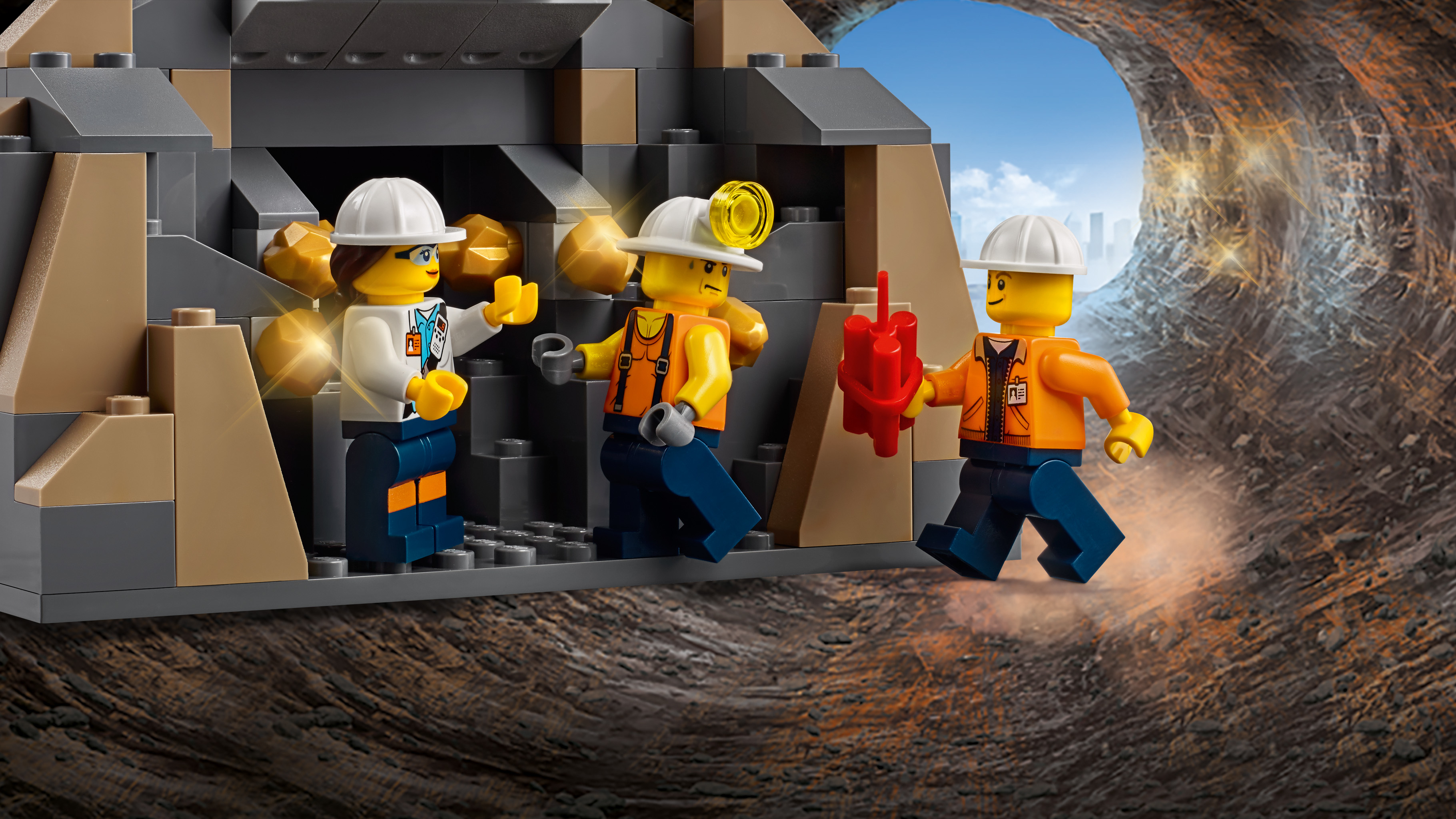 Débusque de l’or caché dans les grottes avec la foreuse ! Dirige la foreuse dans les profondeurs de la grotte et extrais les pépites d’or avec la pelleteuse. Vide la pelleteuse près du labo pour que le géologue puisse analyser ce que tu as trouvé. Tu peux aussi utiliser les outils du présentoir pour dégager les débris du forage ! Prends garde à l'araignée géante qui rôde sur les rochers. Elle n'a pas l'air contente d'être dérangée par tous ces bruyants travaux !
