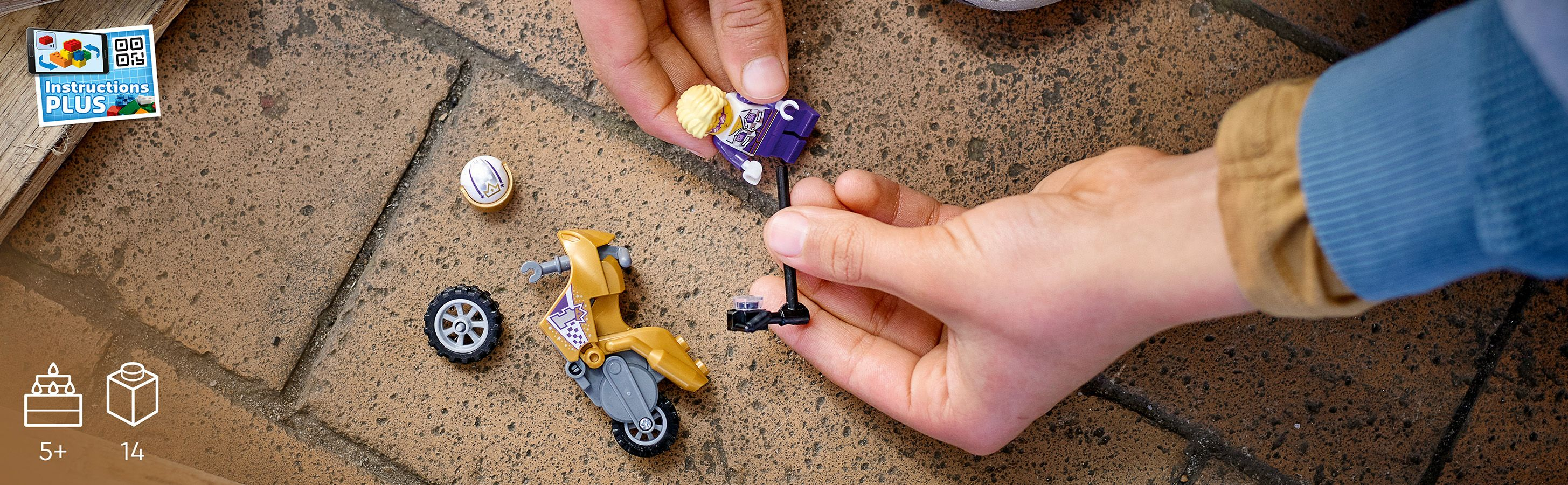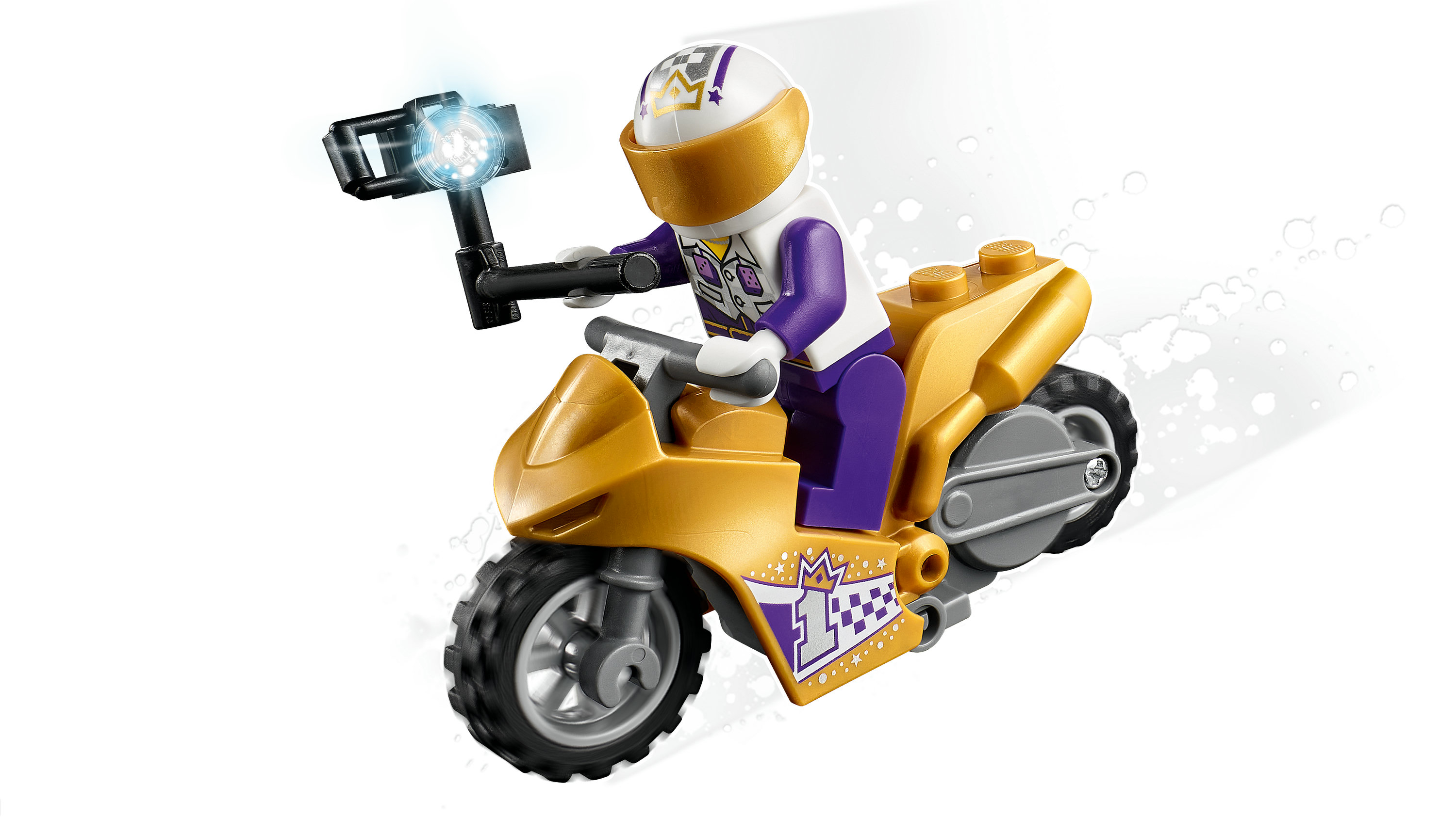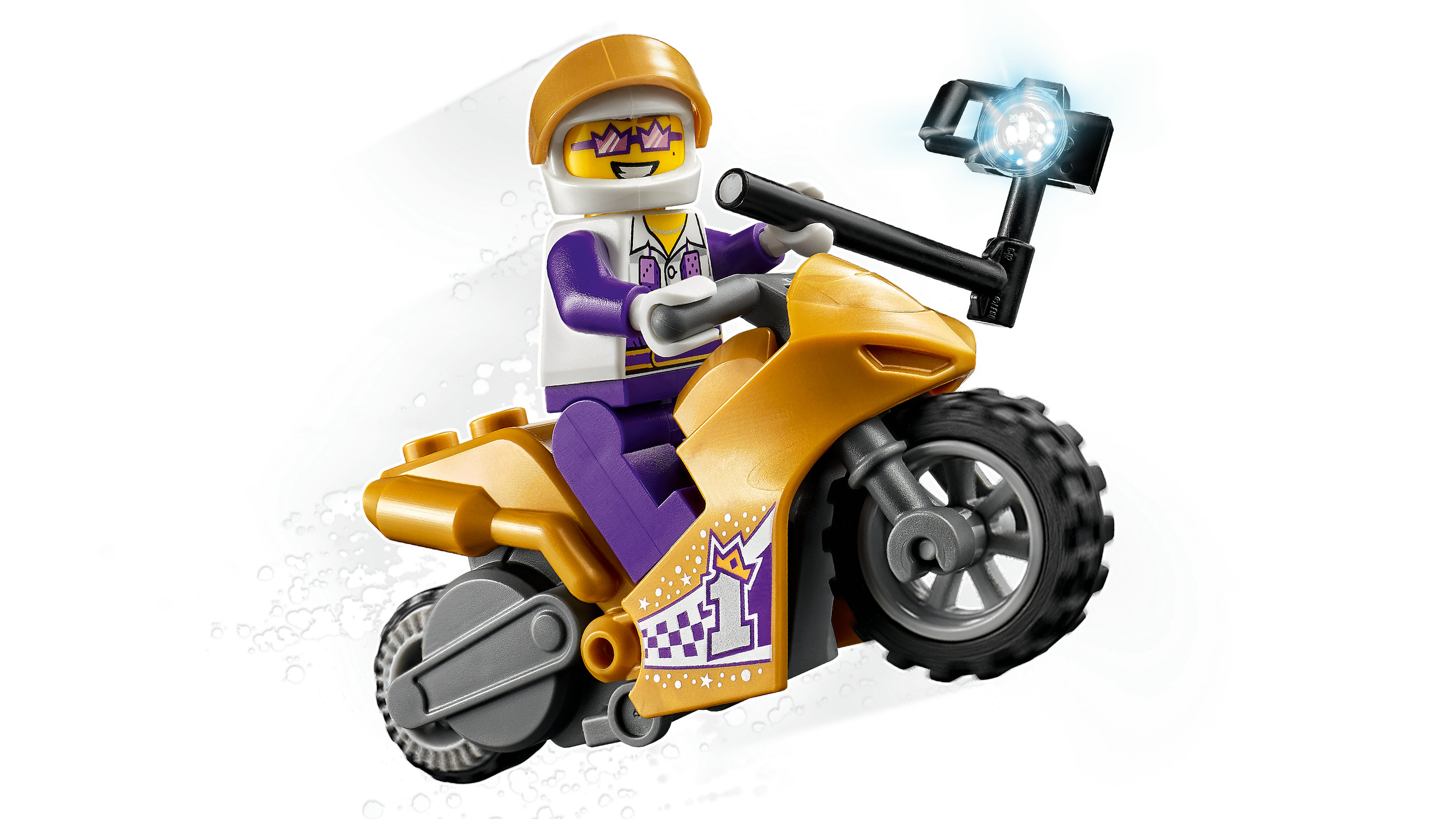 Les passionnés daction vont adorer La moto de cascade Selfie LEGO® City (60309), qui inclut une moto pour effectuer dincroyables roues arrière et acrobaties. Il ne manque plus que le flamboyant Spotlight de la série TV LEGO City Adventures, armé de sa perche à selfie, pour créer un spectacle de haut vol remarquable.