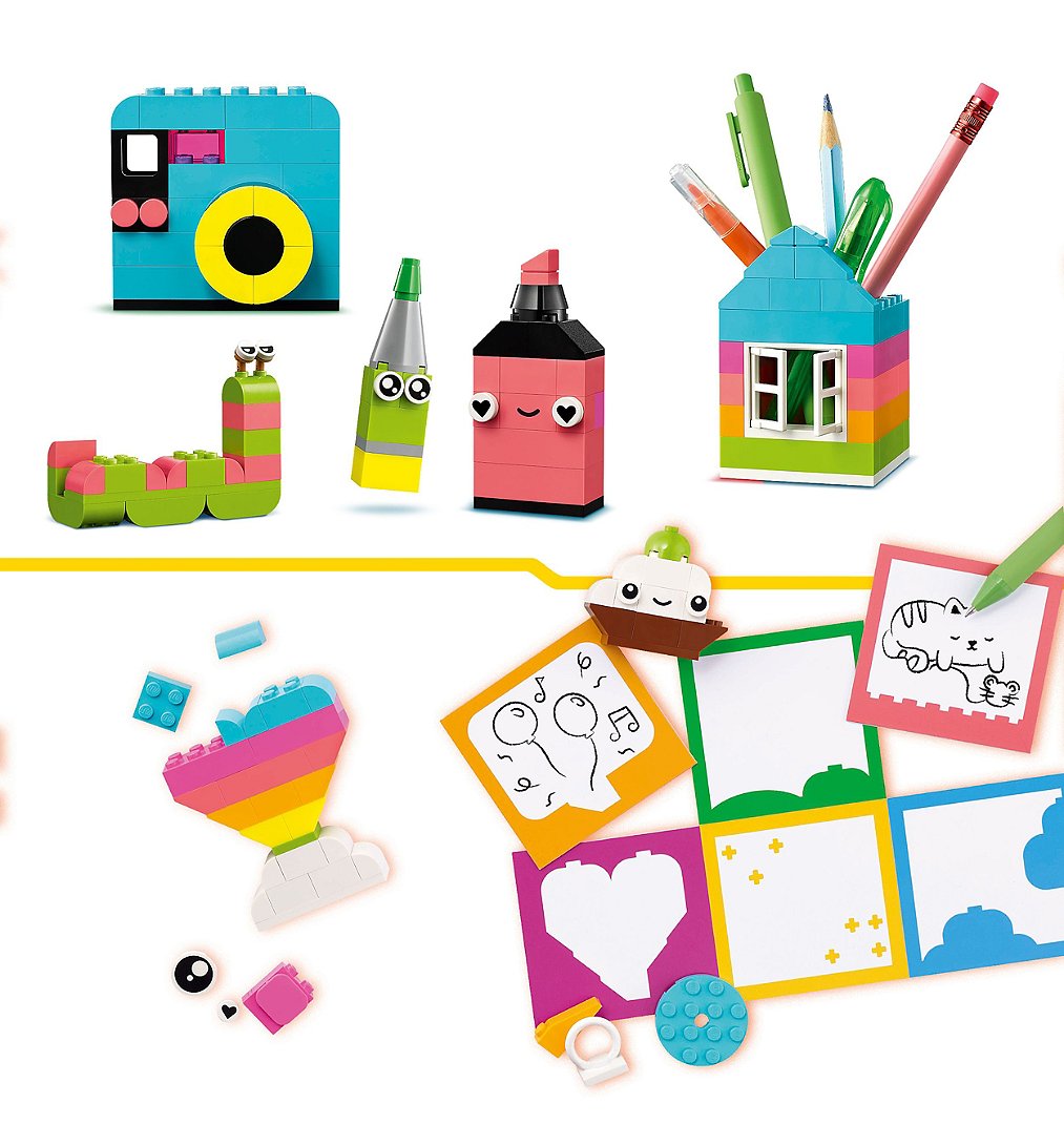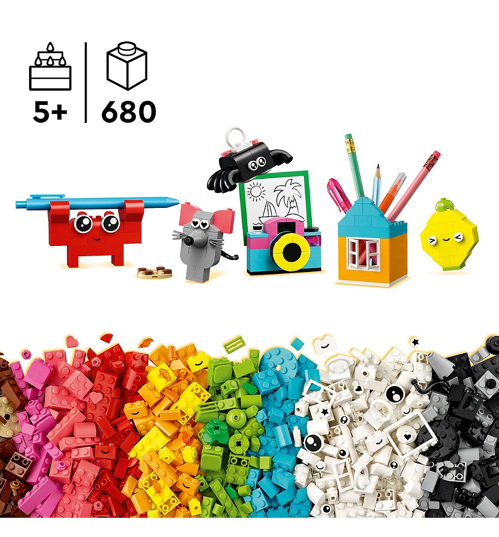 | Plus produit | Invitez les enfants à créer des personnages, des jouets et des objets ludiques et fonctionnels avec La boîte créative du bonheur LEGO® Classic. |