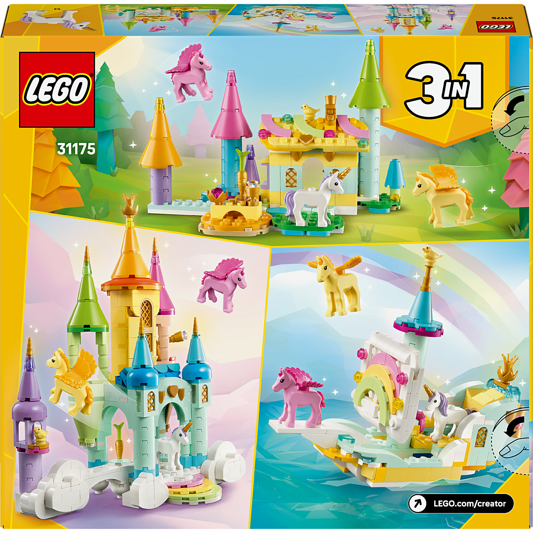 | Libellé | LEGO® Creator - Le Château des Licornes, Set de Jeu avec Animaux, Objet Décoratif - 31175 |