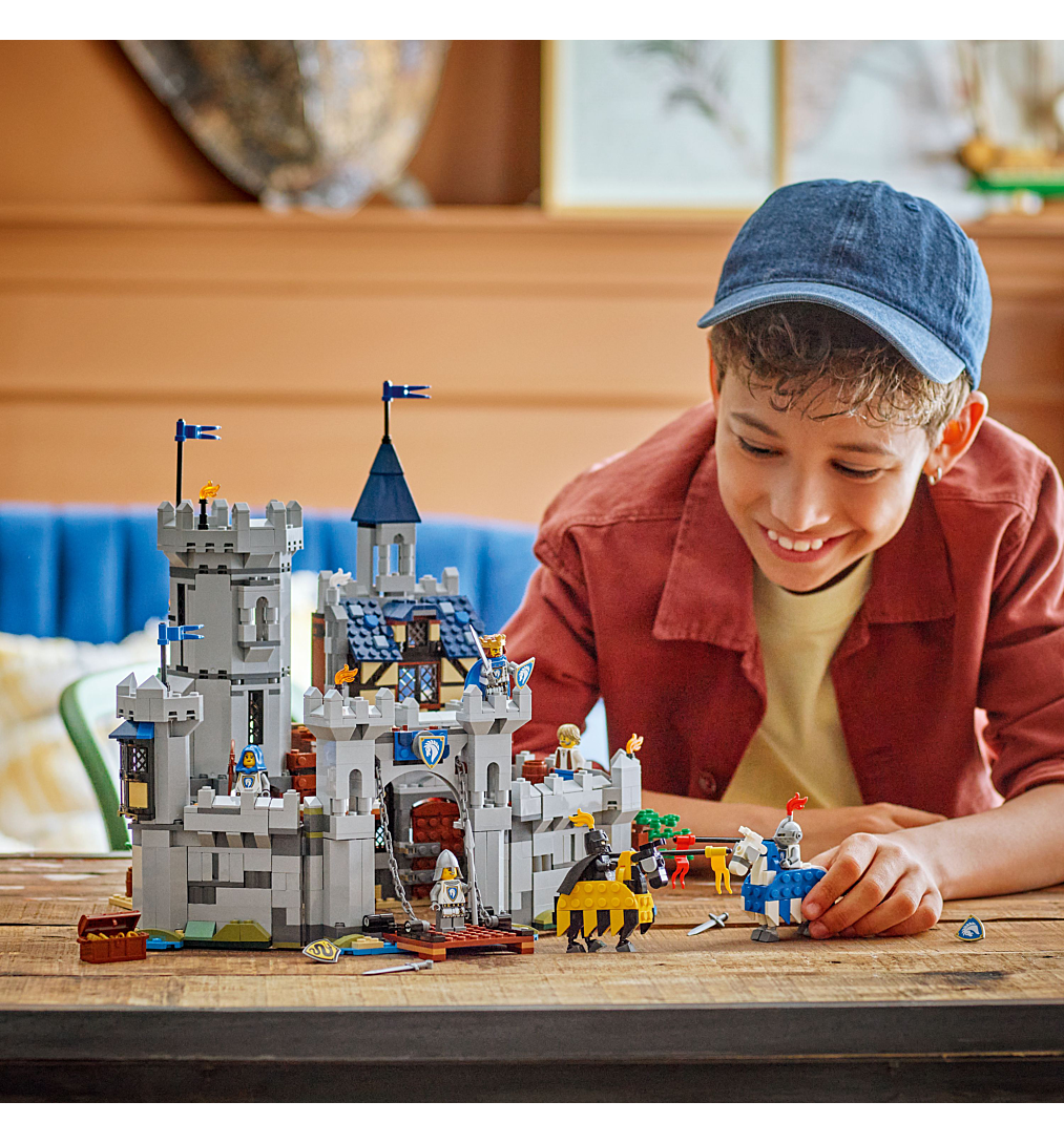 Plongez les enfants dans l’action médiévale avec Le château médiéval des chevaliers LEGO® Creator 3-en-1 (31168). Le modèle s’ouvre à l’arrière et regorge de détails fascinants, dont un pont-levis mobile, une grande salle, une écurie, une forge, un coffre au trésor, la chambre du roi, une salle d’écriture et 2 terrasses sur les tours. Les garçons et les filles dès 9 ans peuvent construire l’une des 3 options : un château interactif, un terrain de tournoi avec un petit château, ou un bourg médiéval avec un moulin. Le set inclut 6 minifigurines : un chevalier roi, un chevalier champion, un chevalier archer, un chevalier lancier, un forgeron, un chevalier du serpent et 2 chevaux articulés. Offrant 3 options de construction dans chaque boîte, les sets LEGO Creator 3-en-1 (vendus séparément) stimulent l’imagination des enfants, ravis de construire et reconstruire des jouets qui alimentent leurs passions. Les modèles ne peuvent pas être construits simultanément. Contient 1 371 pièces.