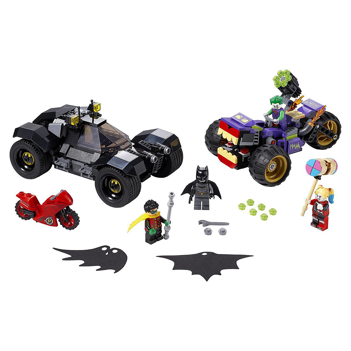 Le set de jeu LEGO® DC Batman La poursuite du Joker en moto à 3 roues (76159) propose aux enfants laction ultra-rapide dun affrontement entre Batman et le Joker. Il comprend des voitures légendaires, des armes incroyables et de célèbres personnages des films Batman.