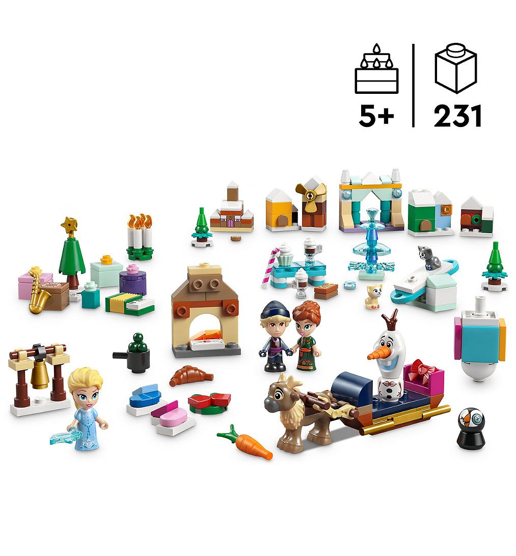 Invitez les filles, les garçons et les fans dès 5 ans à démarrer le compte à rebours avant Noël avec le fabuleux Calendrier de l’Avent 2025 La Reine des neiges de Disney (43273) empli de jouets à construire. Il inclut les micro-poupées LEGO® ǀ Disney d’Elsa, Anna et Kristoff, ainsi que Sven, Olaf et 2 chatons LEGO ǀ Disney. Chaque fenêtre cache un personnage ou une petite construction qui ajoute une touche de magie dans l’attente des fêtes. Après une construction amusante, la boîte devient un jeu de société qui entraîne les enfants dans une chasse au trésor féerique avec les personnages. Chaque jour un objet à construire détaillé apporte un nouveau bonheur et nourrit la passion des enfants pour La Reine des neiges de Disney, la créativité LEGO et la magie des fêtes. Une fois les fêtes terminées, les modèles de ce calendrier de l’Avent LEGO peuvent être combinés avec d’autres sets de la gamme LEGO ǀ Disney (vendus séparément) pour enrichir le jeu.