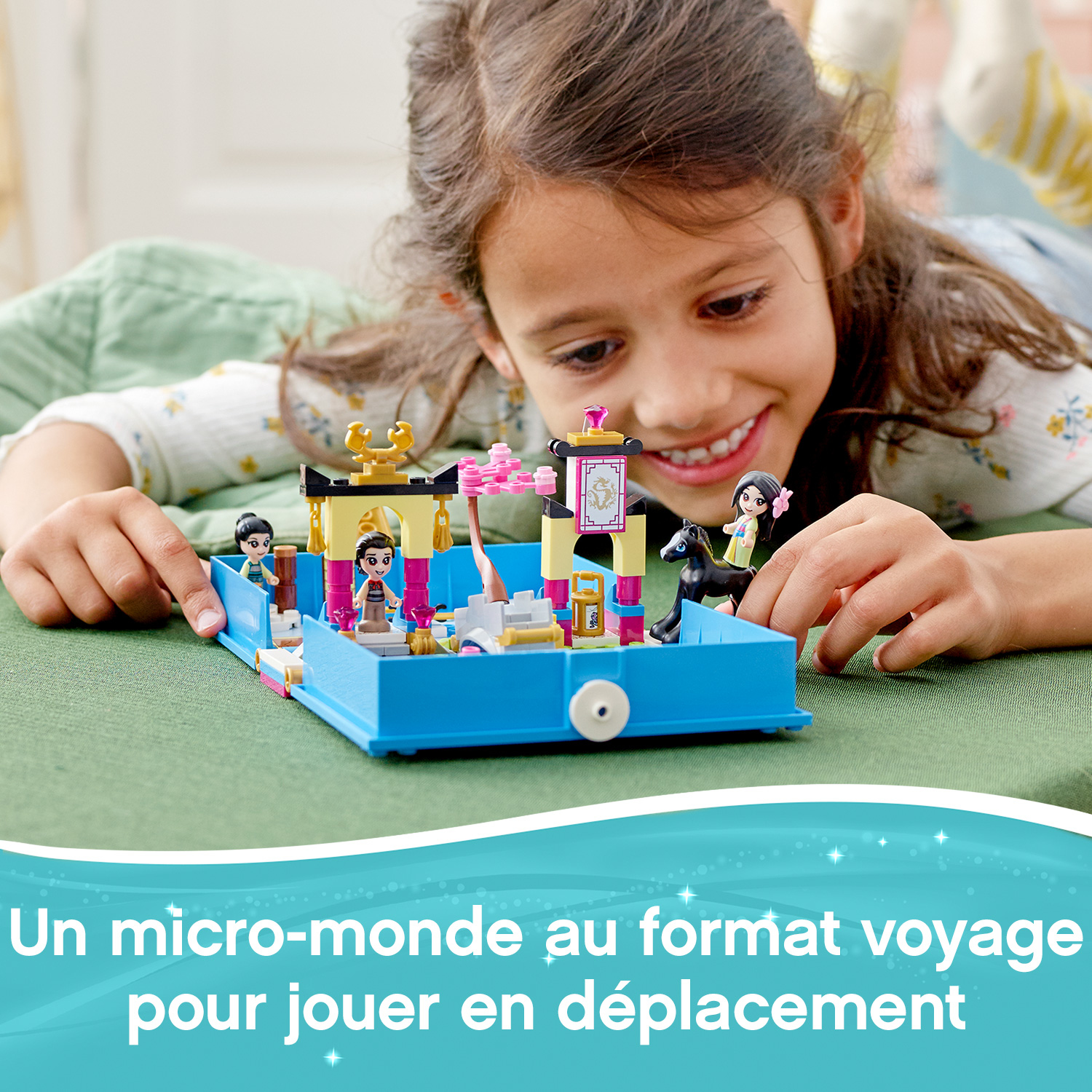 Lhonneur et laventure sont au rendez-vous pour les fans de Mulan de Disney dans Les aventures de Mulan avec ce livre de contes LEGO® ? Disney (43174). Il se compose dun livre personnalisable avec 2 décors : un terrain dentraînement et un jardin, ainsi que 2 feuilles dautocollants.Pour jouer et samuser en déplacementLes enfants imagineront des jeux de rôle avec ce set transportable. Il est possible de jouer avec ce set seul ou de le combiner à dautres sets LEGO ? Disney pour des options de jeu passionnantes. En outre, cest un excellent cadeau pour les fans de Mulan de Disney.Les personnages et décors permettent de jouer immédiatementCe cadeau Disney créatif inclut 3 micro-poupées détaillées, dont 2 versions LEGO Disney de la princesse Mulan et Li Shang, ainsi que le cheval Khan de Disney, plus une brique avec une décoration de Cri-Kee. Les personnages permettent aux enfants de jouer rapidement, tout comme les décors conçus pour stimuler la créativité et limagination.