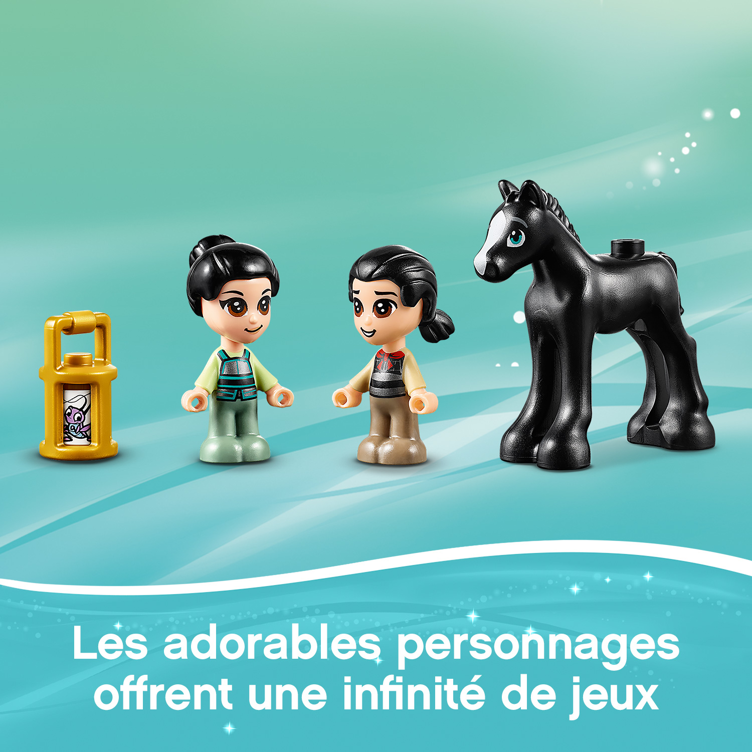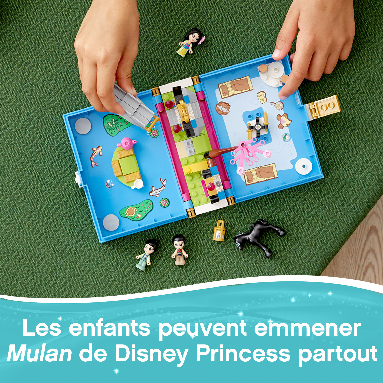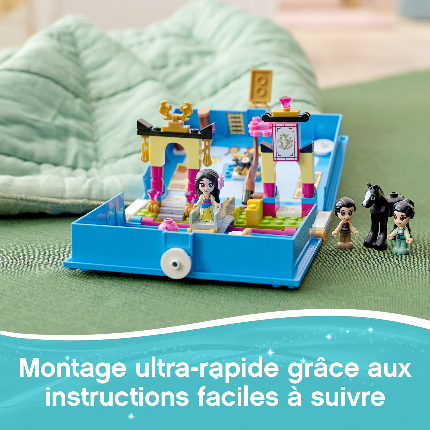 Lhonneur et laventure sont au rendez-vous pour les fans de Mulan de Disney dans Les aventures de Mulan avec ce livre de contes LEGO® ? Disney (43174). Il se compose dun livre personnalisable avec 2 décors : un terrain dentraînement et un jardin, ainsi que 2 feuilles dautocollants.Pour jouer et samuser en déplacementLes enfants imagineront des jeux de rôle avec ce set transportable. Il est possible de jouer avec ce set seul ou de le combiner à dautres sets LEGO ? Disney pour des options de jeu passionnantes. En outre, cest un excellent cadeau pour les fans de Mulan de Disney.Les personnages et décors permettent de jouer immédiatementCe cadeau Disney créatif inclut 3 micro-poupées détaillées, dont 2 versions LEGO Disney de la princesse Mulan et Li Shang, ainsi que le cheval Khan de Disney, plus une brique avec une décoration de Cri-Kee. Les personnages permettent aux enfants de jouer rapidement, tout comme les décors conçus pour stimuler la créativité et limagination.