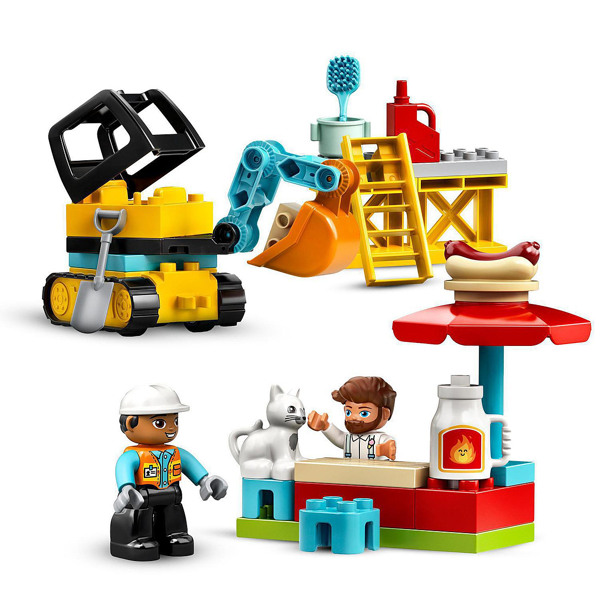 Avec 5 personnages contemporains (une femme peintre, une conductrice de grue, 2 ouvriers de chantier et un vendeur de hot-dogs) plus de nombreuses fonctions amusantes, telles que des briques sonores et lumineuses et un bulldozer à moteur actionné par poussée, ce set éveille, amuse et inspire les jeunes imaginations. Et pour étendre encore les bienfaits du jeu, ce modèle peut être combiné avec les autres sets LEGO DUPLO Construction.