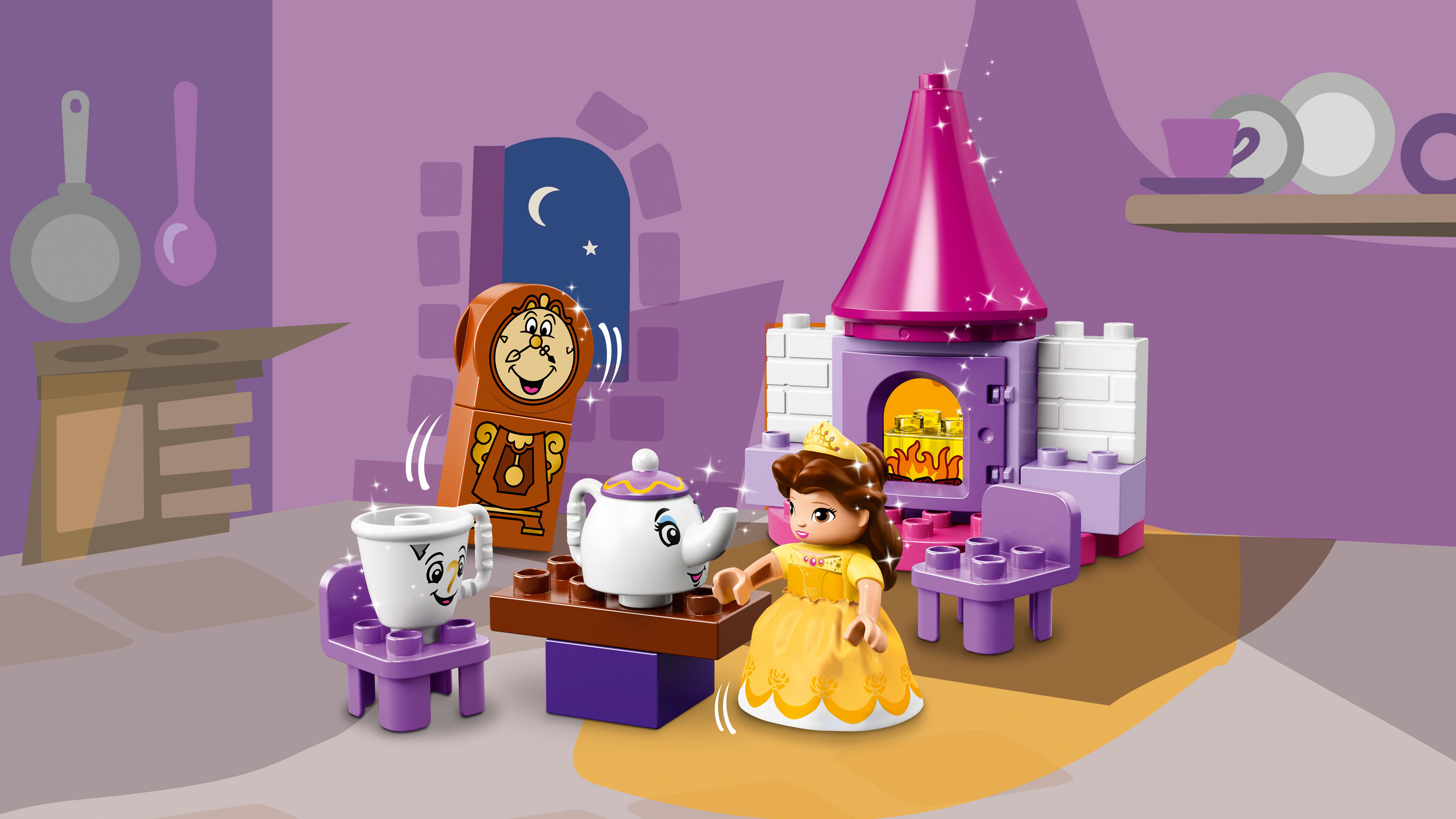 Entrez dans la cuisine du château enchanté pour chanter et danser avec la Belle de Disney et ses nouveaux amis. Les fans de La Belle et la Bête de Disney adoreront rejouer les scènes du film ou inventer de nouvelles histoires. Développez les compétences de construction précoces de votre enfant grâce à ce jouet LEGO® DUPLO® Disney avec ses nombreux personnages tant aimés et ses briques décorées pour donner vie à la magie. Comprend une figurine LEGO® DUPLO® : Belle, plus Madame Samovar, Zip et Big Ben.