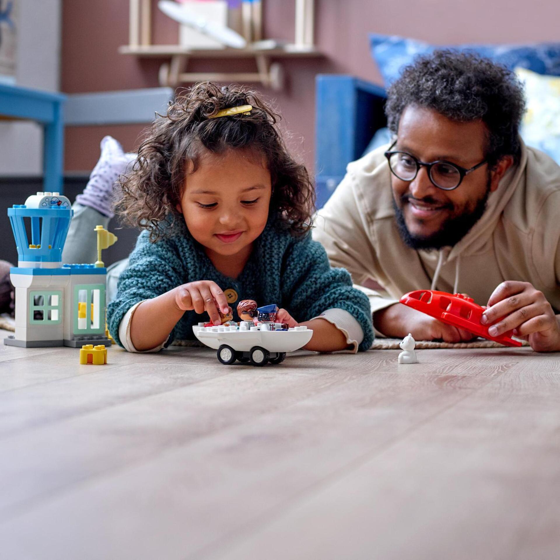 Faites voyager limagination des tout-petits vers une nouvelle destination chaque jour avec le set LEGO® DUPLO® Ma ville Avion et aéroport (10961).Partagez des aventures de voyage en avion avec votre tout-petitVivez les aventures passionnantes et le plaisir des voyages en famille à bord dun avion. Rejoignez un père et sa fille qui senvolent pour rendre visite à leur famille et à des amis. La partie supérieure de lavion se soulève pour accéder à lespace de jeu à lintérieur. Laéroport présente une porte qui souvre, une tour de contrôle qui tourne, un tapis à bagages et... de gros câlins vous attendent à larrivée !Jeux éducatifs à manipuler pour les tout-petitsLes jouets LEGO DUPLO placent entre les mains des jeunes enfants un univers infini de jeu, dexpression personnelle et dapprentissage ludique. Avec les sets DUPLO, parents et enfants partagent de précieuses étapes déveil en jouant ensemble.