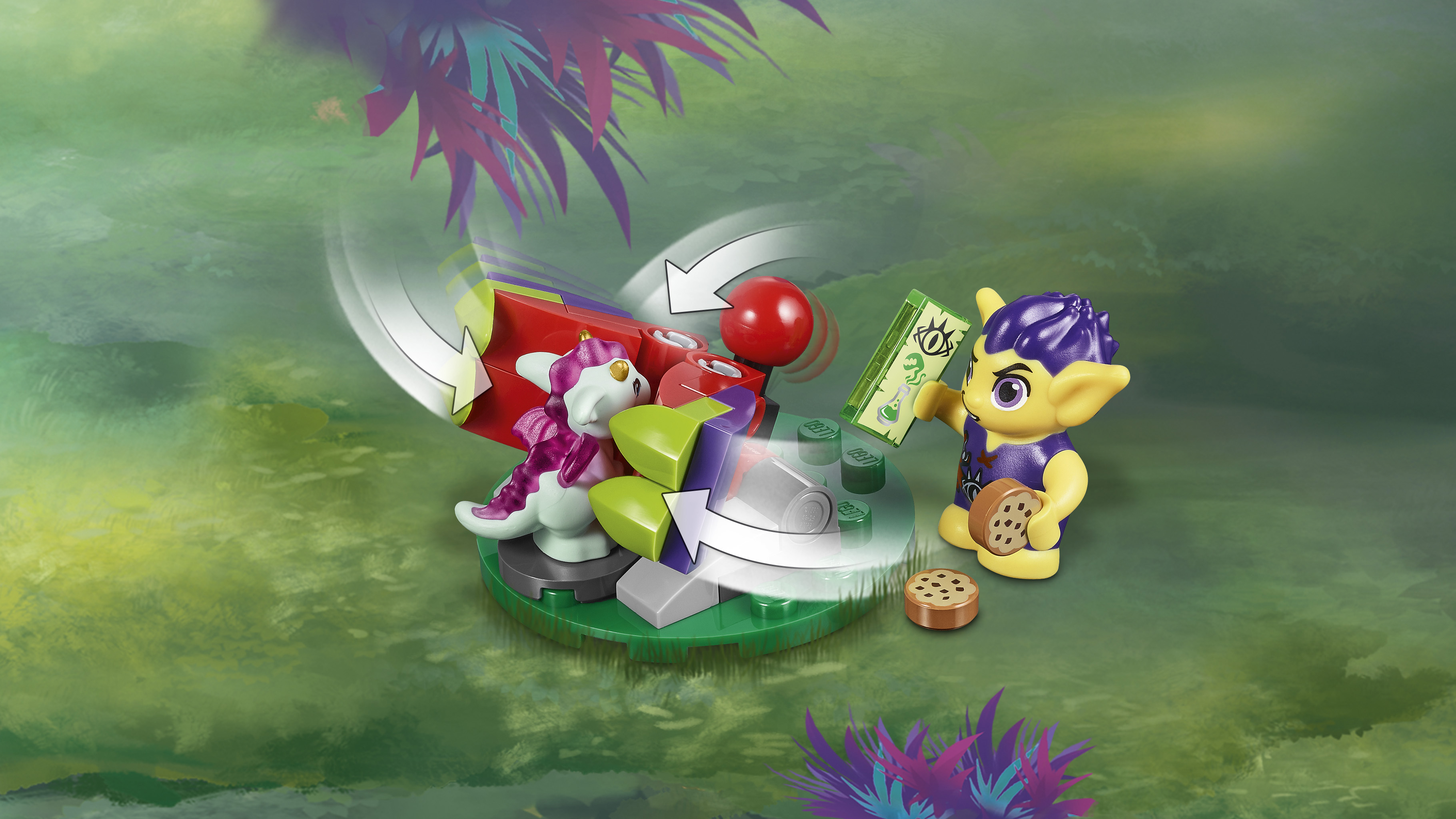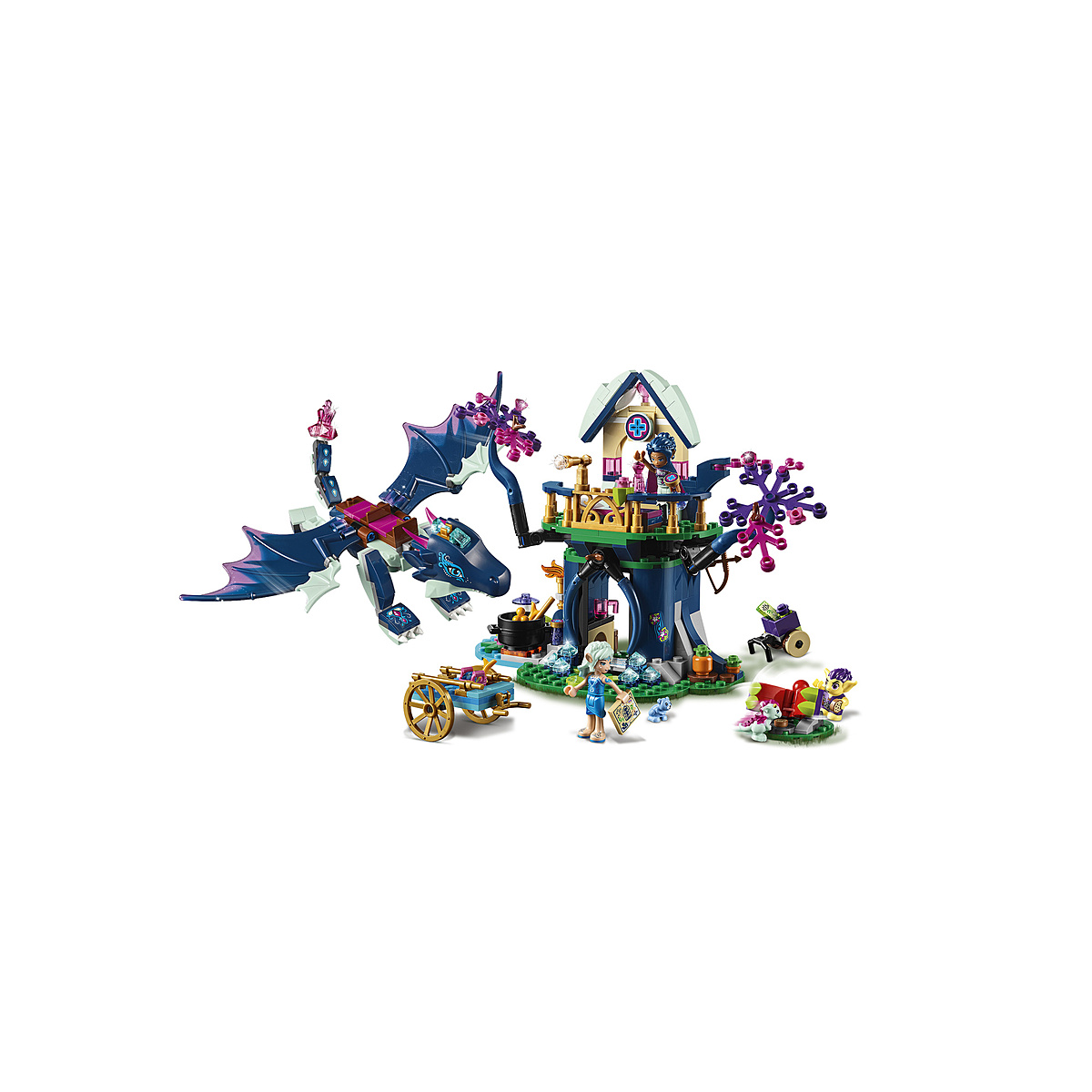 La boîte contient • Inclut deux minipoupées : Rosalyn Ombrenuit et Naida Cœurderivière, plus des figurines de Rimlin le gobelin, Sapphire le dragon, Lula le bébé dragon et Lil’ Blu le bébé ours. • Comprend un arbre avec des branches qui se déploient pour révéler une cabane dans l’arbre à deux niveaux avec une salle d’alchimie, une cheminée, des feuilles qui bougent, une cuisine, une chambre et un poste de travail médical, plus un grand chariot. • Inclut aussi un dragon adulte positionnable avec des ailes transparentes et de la place pour deux minipoupées et la figurine du bébé sur son dos, plus une zone avec une petite plante carnivore avec un piège qui se referme. • Les branches de l’arbre s'ouvrent pour révéler le deuxième niveau de l’infirmerie cachée. • Le chariot se charge pour transporter les ingrédients et les bouteilles de la potion vers le chaudron à l’extérieur. • Le levier de la plante carnivore permet de piéger le bébé dragon. • Les accessoires incluent une bouteille de potion magique, un chaudron, une torche, un arc et une flèche, une brouette, deux cookies et une couronne dorée. • Les autres gobelins malicieux peuvent être collectionnés dans certains ensembles LEGO® Elves. • Le dragon avec les ailes dépliées mesure plus de 5 cm de haut, 20 cm de long et 23 cm de large. • L’infirmerie cachée mesure plus de 16 cm de haut, 9 cm de large et 16 cm de profondeur.