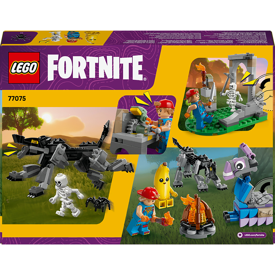 Les gamers vont adorer Le camp de Banane et Mécano LEGO® Fortnite® (77075) pour les enfants dès 7 ans. Plein d’éléments reconnaissables et de personnages culte, ce set inspiré du jeu vidéo encourage les fans à créer leur propre aventure LEGO Fortnite. Ce jouet recrée les premiers défis relevés par les joueurs dans le jeu vidéo LEGO Fortnite Odyssey, et les enfants s’amusent à construire un feu de camp, un établi et des ruines qui peuvent être démontés et transformés. Il inclut également un Lama de ravitaillement et un loup avec des pattes et une queue mobiles. L’action prend vie avec les minifigurines de Banane, Mécano et d’un squelette, dotés d’armes pour stimuler le jeu de rôle imaginatif. Superbe cadeau pour les enfants et les gamers de tous âges, ce set débloque un bonus in-game pour le jeu vidéo LEGO Fortnite, sous forme d’un équipement spécial pour Mécano, que les joueurs peuvent obtenir en scannant le code QR sur la couverture des instructions de montage. Contient 250 pièces.