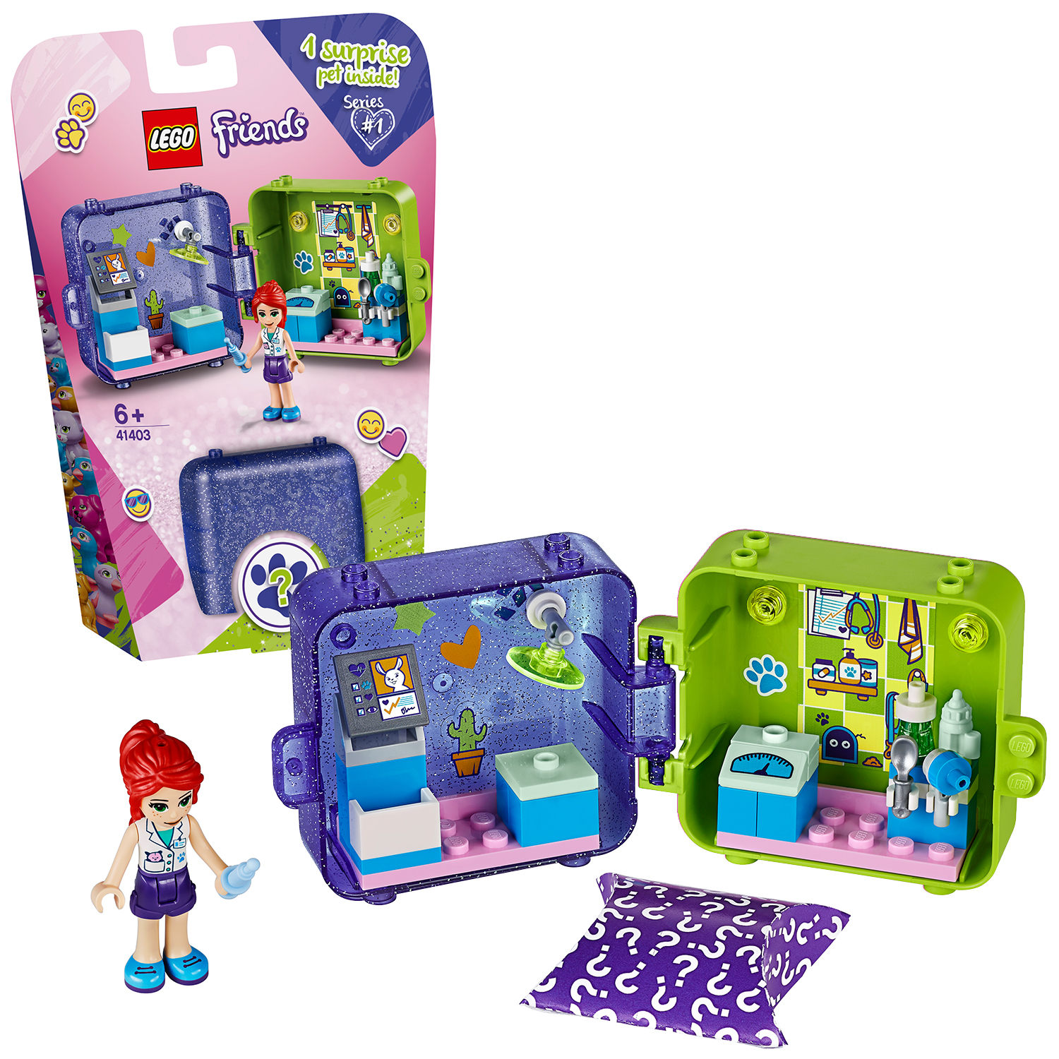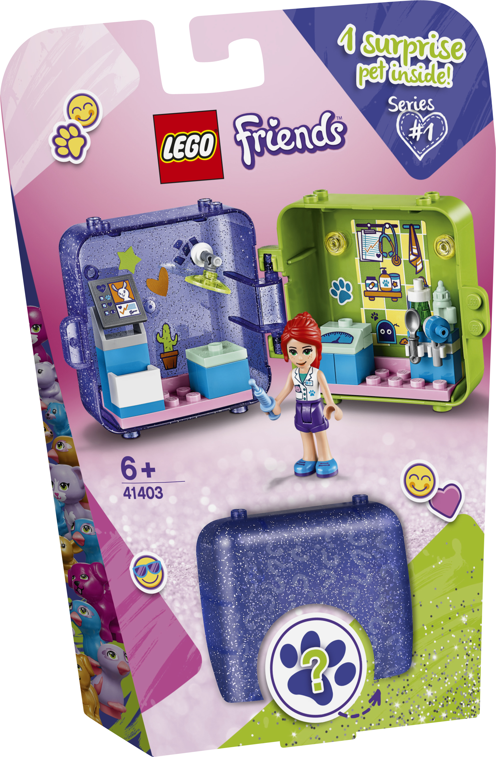 La boîte contient • Avec ce set, les enfants peuvent exprimer leur côté bienveillant en aidant Mia à s'occuper des animaux dans sa clinique. Ils peuvent prodiguer des soins aux animaux partout, car les éléments peuvent être rangés dans ce jouet transportable. • L’intérieur du cube de jeu de Mia (41403) renferme une mini-poupée vétérinaire, un animal de compagnie, de nombreux équipements vétérinaires à construire, des accessoires pour mini-poupée et une feuille d'autocollants. • Les enfants peuvent retirer les éléments du cube ou glisser le tout dans un sac pour s’amuser partout. Il est possible de séparer le cube en deux pour partager le jeu avec un(e) ami(e). De plus, il s’assemble avec d’autres cubes pour être exposé. • Un formidable cadeau et une récompense idéale pour les enfants de 6 ans et plus. Ce jouet de vyage est idéal pour les enfants passionnés par les animaux. Et l'assemblage facile plaira aux enfants qui découvrent la construction LEGO®. • Le cube mesure un peu plus de 8 cm de large et 6 cm de haut. Ces dimensions signifient qu'il se glisse facilement dans un sac à dos ou un sac à main, ce qui en fait un jouet idéal pour égayer les longs voyages. • Ce jouet de voyage ne nécessite aucune pile pour que le jeu d’imagination prenne vie. Après tout, qui a envie de se soucier de piles avant de partir en voyage • • Les enfants font connaissance avec les filles de Heartlake City. C'est un lieu où se rencontrent le jeu d'imagination et les amitiés fabuleuses, où les enfants peuvent réaliser tout ce qu’ils veulent s’ils suivent leur cœur. • Les jouets amusants LEGO® sont conformes aux normes industrielles les plus élevées. Les enfants qui construisent ce set de jeu trouveront que les briques s’assemblent toujours solidement et se séparent facilement. • Le groupe LEGO soumet les briques et pièces LEGO® à des tests de chute, chaleur, rayure et bien d'autres, pour garantir que chaque set LEGO est conforme aux normes de qualité et de sécurité les plus élevées au monde.