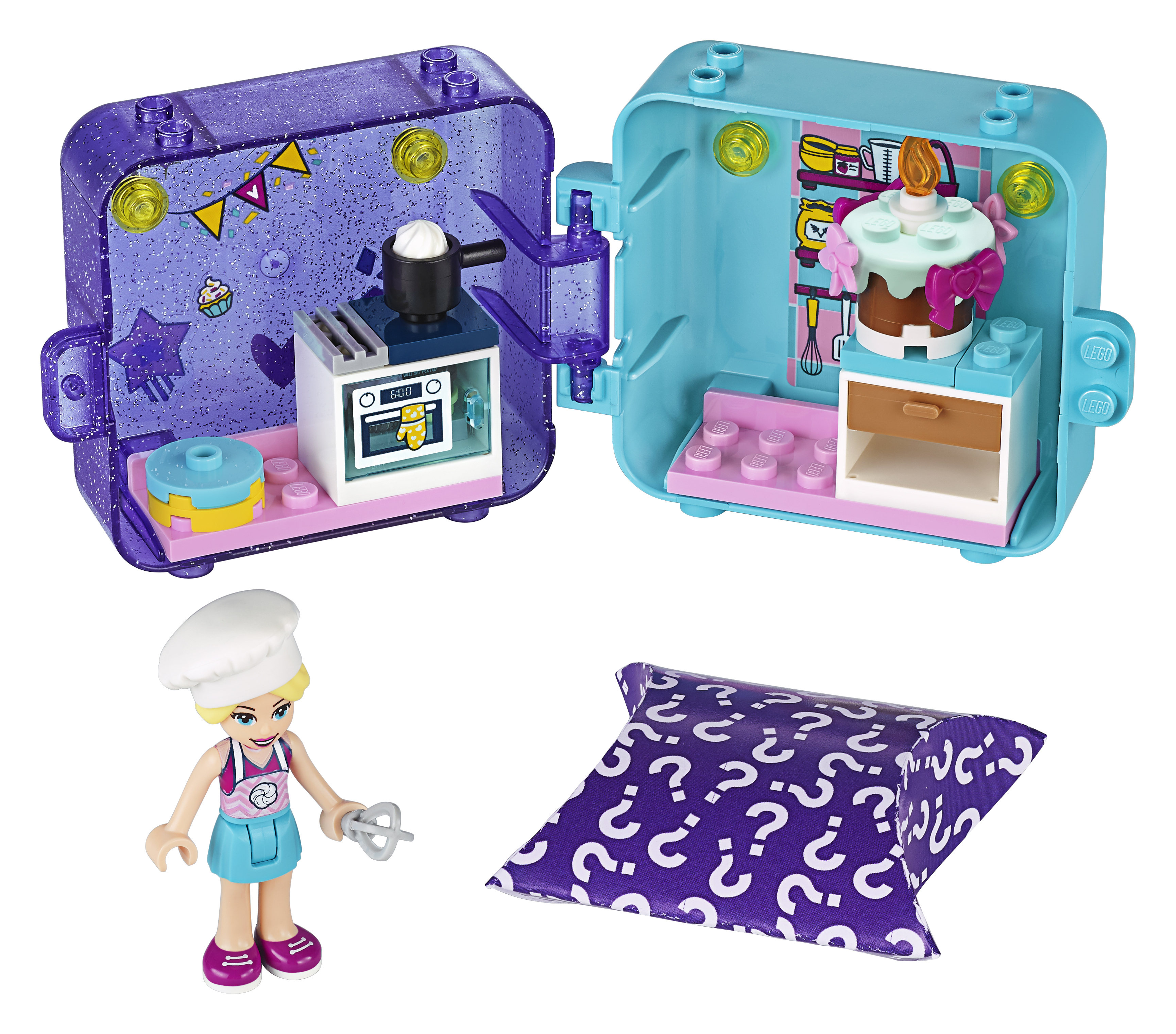 Les enfants vont adorer aider Stéphanie à préparer un gâteau. Le kit de cuisine est amovible pour pouvoir jouer en dehors de la boîte. Il peut aussi être fixé à la base du cube, ainsi les enfants ne perdront pas leurs briques LEGO lors de leurs déplacements ! De plus, les 2 côtés se séparent, pour partager le plaisir de la pâtisserie entre amis.